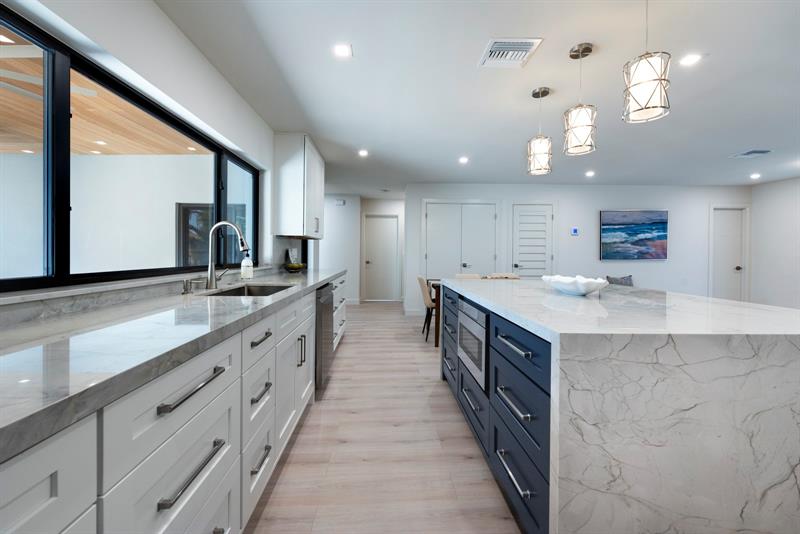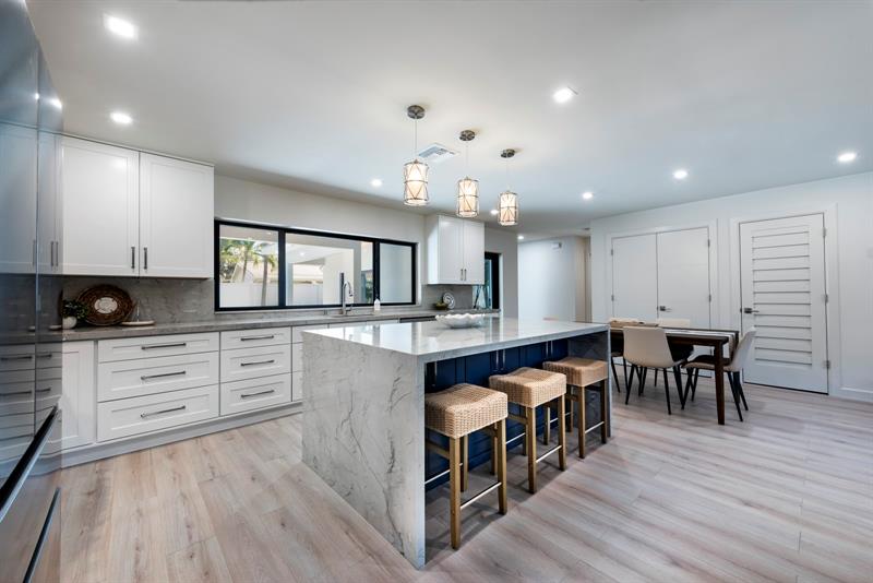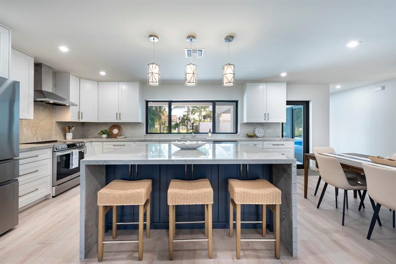 !Exquisite coastal-themed 4-bed, 3.5-bath fully reconstructed top-to-bottom! 2,300 sf of luxurious comfort, open-concept w/ gourmet kitchen: custom cabinetry, large island, top-tier stainless appliances. Primary suite has TWO walk-in closets, spa-like bath & double doors out to gorgeous pool patio. PVC underground plumbing (no cast-iron), all new electrical thru-out, custom kitchen & bath fixtures. Full impact windows. 4 oversized ensuite bdrms w/ large closets! Enjoy seamless indoor-outdoor flow to huge lanai w/ 10 ft ceiling. Beautifully landscaped & fully fenced. Every detail attended to including finished air-conditioned garage! The perfect combination of meticulous design, versatile function & coveted location, the best South Florida & sought after Lighthouse Point offers! Act fast.