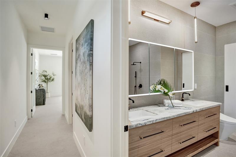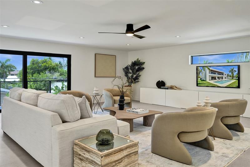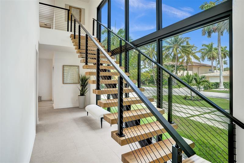 Modern new construction in Lighthouse Point’s coveted Lake Placid enclave pairs sleek architecture with warm, organic finishes. The chef’s kitchen offers an AGA induction range, Signature Kitchen Suite appliances, quartzite counters, custom white-oak cabinetry, and a spacious butler’s pantry with washer/dryer. The first-floor primary suite has a private entry and a spa bath with wet room and soaking tub. Upstairs, a spacious loft with wet bar opens to a large covered balcony; three guest bedrooms complete the level. Highlights include soaring 28-ft ceilings, hard-wired internet, a 2-car garage with EV (Tesla-compatible) charging, a solar-ready setup, and a prime location near the Intracoastal, Hillsboro Inlet, the tennis club, and Lighthouse Point Yacht Club.