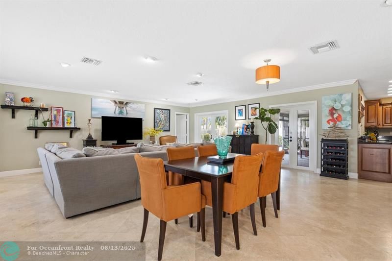Welcome to your private oasis ,split-bedroom floorplan w/ travertine flooring throughout the main living areas. The gourmet kitchen showcases rich wood cabinetry, granite countertops, & crown molding throughout Spacious bedrooms & fully renovated bathrooms, while impact windows & doors ensure peace of mind,