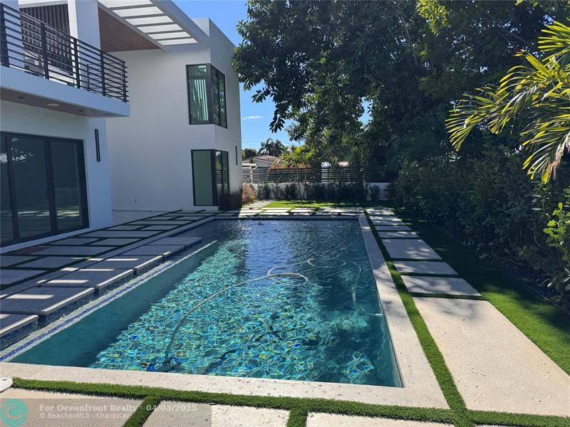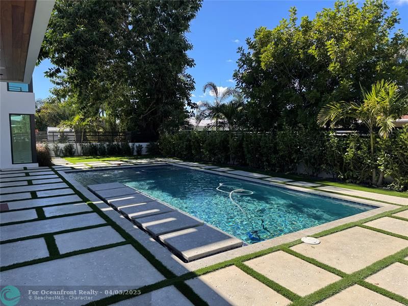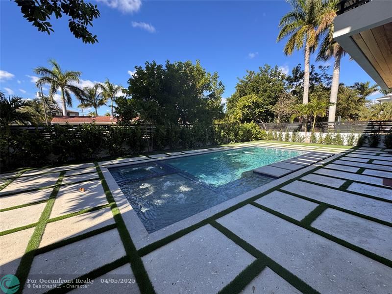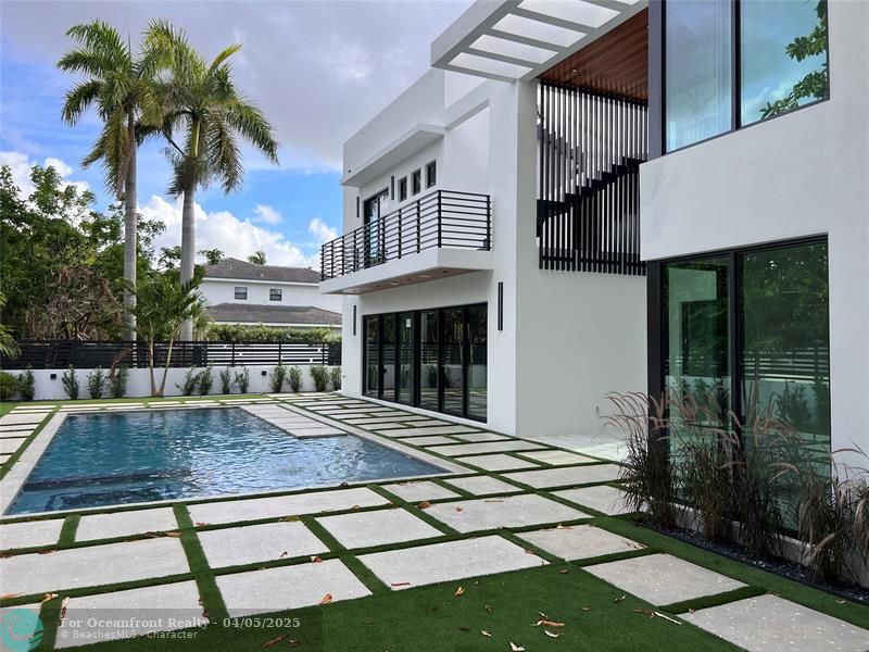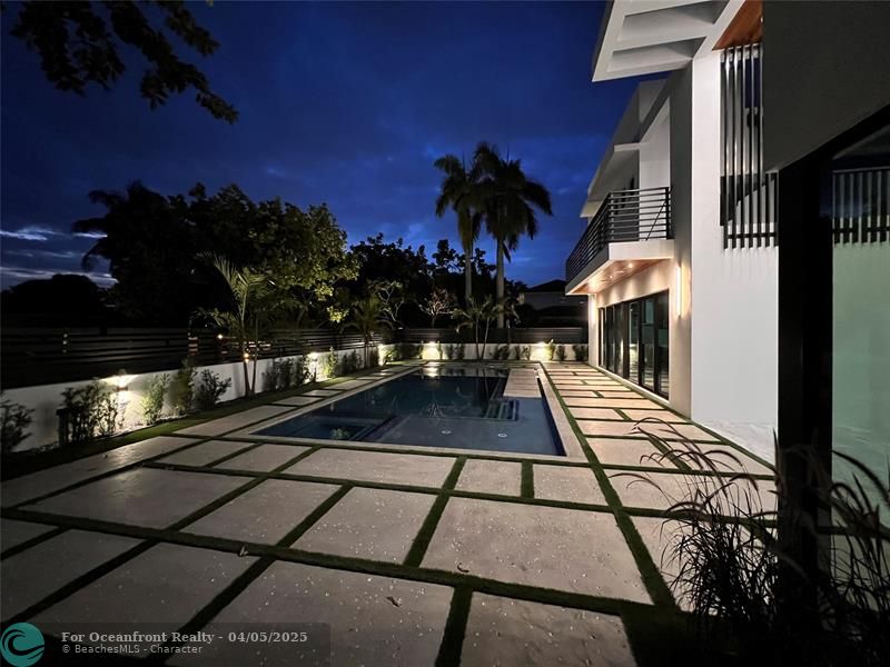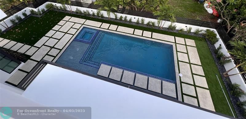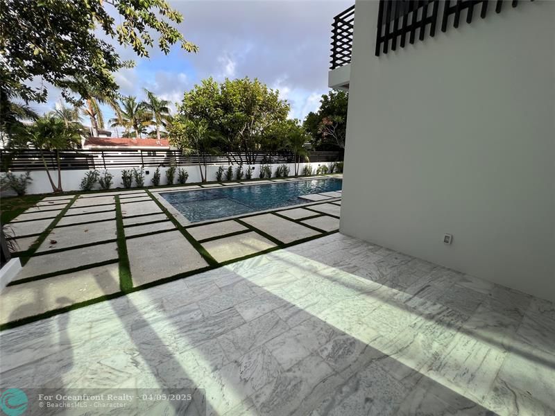 Step outside to your backyard oasis - gorgeous pool, marble patio, and plenty of space to relax. All wrapped up with a modern concrete and aluminum fence for privacy.