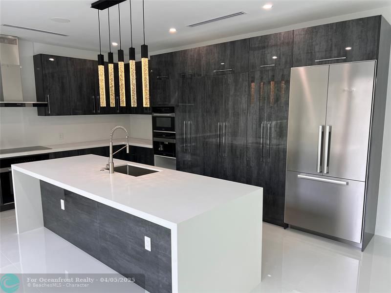 The open kitchen is a chef’s paradise with Miele appliances, a built-in coffee maker, and a walk-in pantry you’ll love. The ground-floor suite is perfect for guests or multi-generational living.