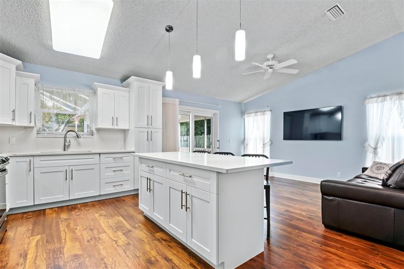 Discover this beautifully remodeled split bedroom pool home featuring 3 bedrooms, 2 bathrooms, a laundry room, a 2-car garage and a screened-in pool perfect for relaxation and entertaining. The updated kitchen offers white soft-close cabinetry, a spacious island topped with stunning marbled quartz countertops and an open family room. The primary bathroom showcases modern finishes throughout. Enjoy peace of mind with hurricane impact windows and doors along with a newer tile roof (2019). The resort style community offers sparkling pools, playgrounds, tennis and basketball courts, dog parks, and scenic walking trails. Conveniently located near top rated schools, restaurants, grocery stores and shopping. Schedule your private tour today!
