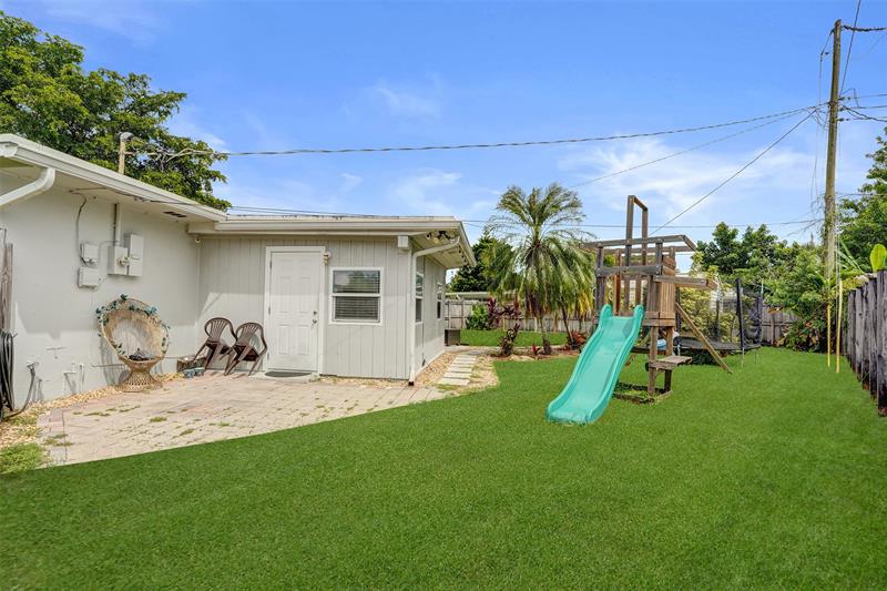 Move-in ready 2-bedroom, 1-bath single-family home situated on a corner lot with no HOA. Features include a newer roof, impact windows, and a bright open floor plan. The remodeled kitchen boasts quartz countertops, stainless steel appliances, white shaker cabinets, and pendant lighting. The backyard is fully fenced with plenty of space for a pool, patio, or playset. Additional highlights include a covered carport, outdoor sitting area, and storage shed. Close to schools, parks, and shopping.