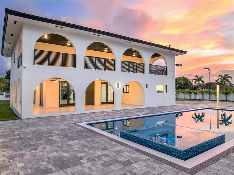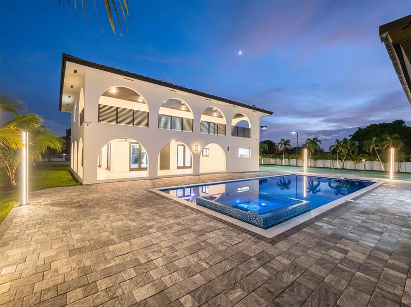 Nestled in the prestigious Miller Estates, this 7,000+ sq ft residence sits on over an acre in one of the most sought-after neighborhoods. A grand circular driveway, expansive carport, and pivot front door set the tone for a resort-like lifestyle. Inside, every detail shines—from a marble staircase, elevator, and water feature to a brand-new metal roof, impact windows, and designer LED lighting. Enjoy a massive kitchen, resort-style pool, basketball court, 2/1 guest house, and a bonus detached space ideal for a gym, yoga studio, or cigar lounge. Offering elegance, comfort, and privacy while just minutes from major highways, this estate truly has it all.