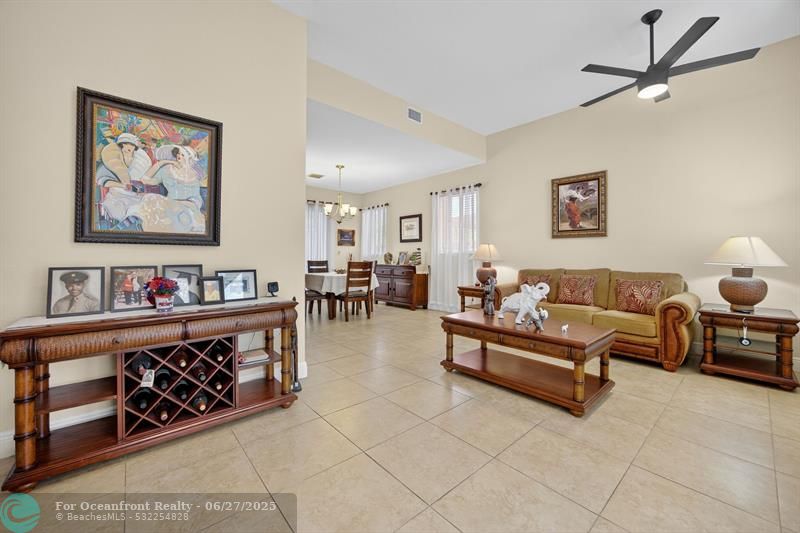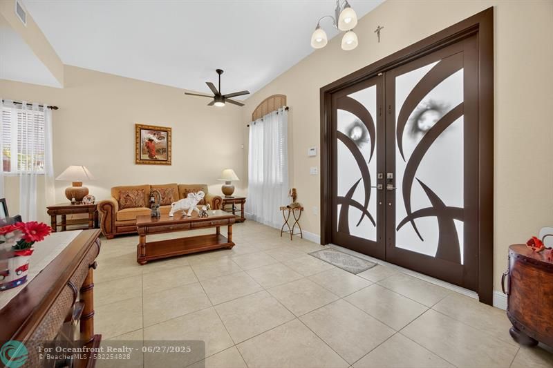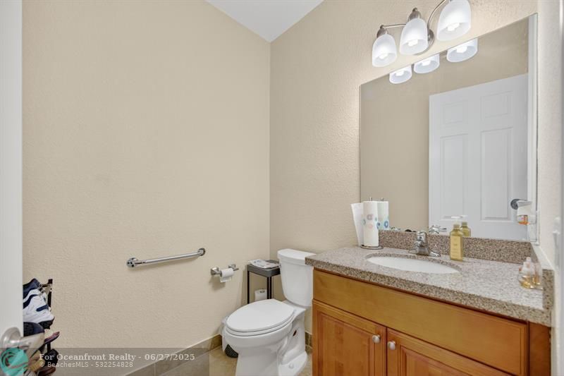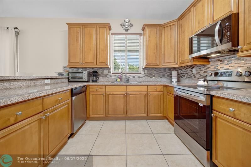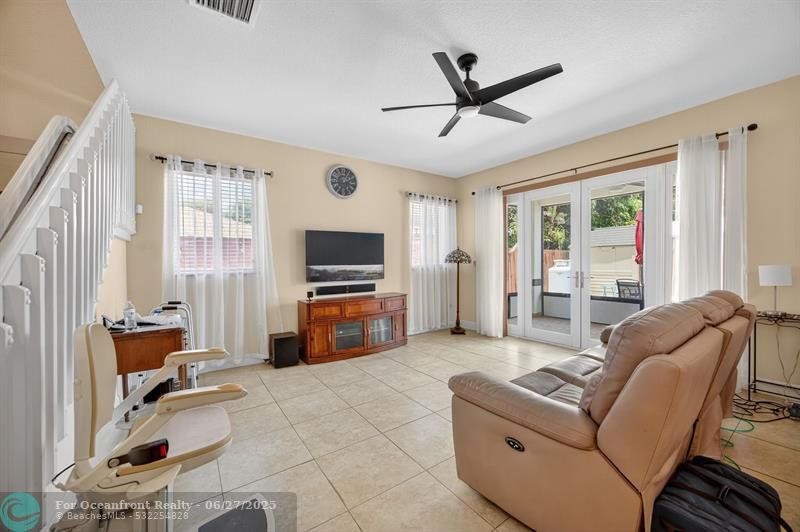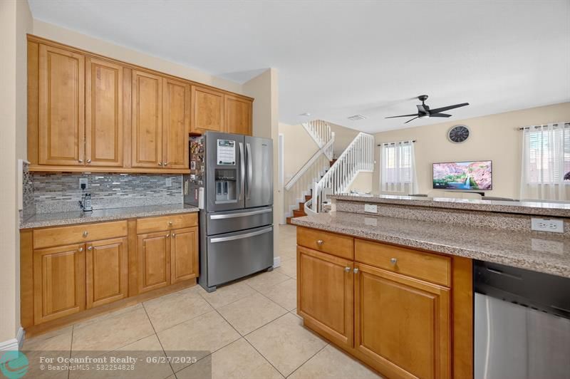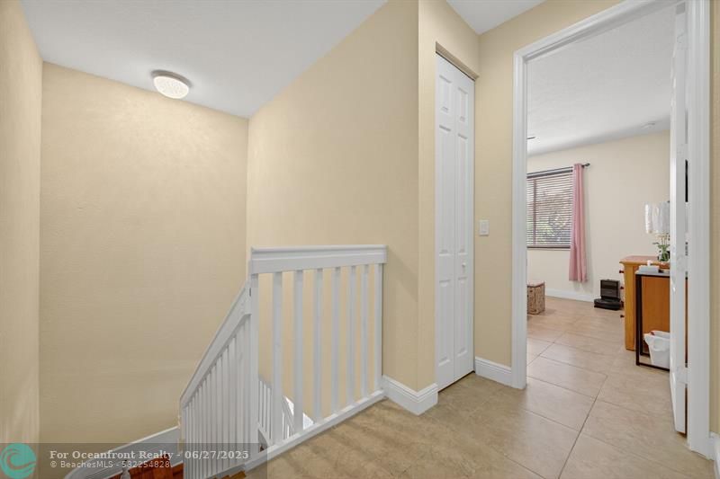 Inside, you’ll find uniform tile flooring throughout the home for a seamless look, with rich wood flooring on the stairs adding a touch of warmth and elegance.