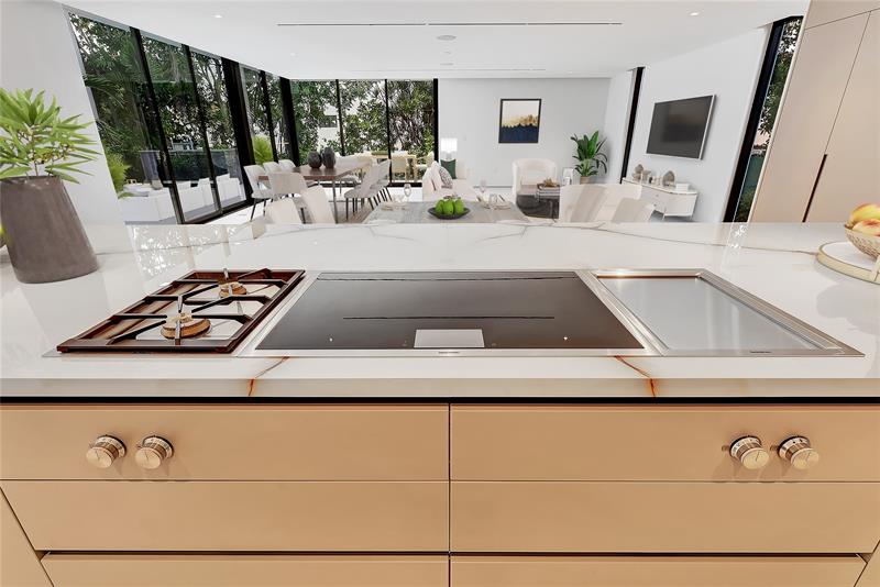 An architectural showpiece in the prime location of Historic South Miami Ave, this 5700 sqft gated estate offers 6 bedrooms, 14’ celings, a 4 stop elevator, 6 car garage, staff quarters with its own entrance and a safe room. The builder was building this home for his personal home no expense was spared, large format porcelain, birch floors, custom closets, floating cabinets and Scavolinii sinks in all the baths, natural wood and marble accents, patios off the bedrooms. A chef’s kitchen with marble island, built in dining table, Sub Zero and Wolf appliances, & large induction cooktop, griddle and a 2 burner gas stove, 2 outdoor kitchens and a rooftop with views of downtown Brickell. Abundant natural light in the entire home with floor to celing & accent windows, this home is one of a kind!