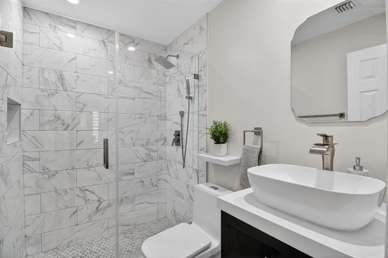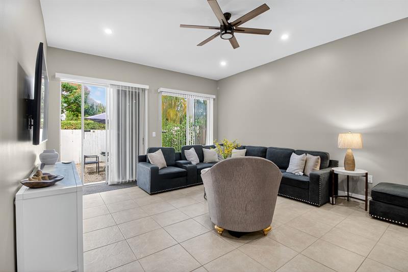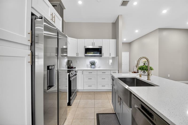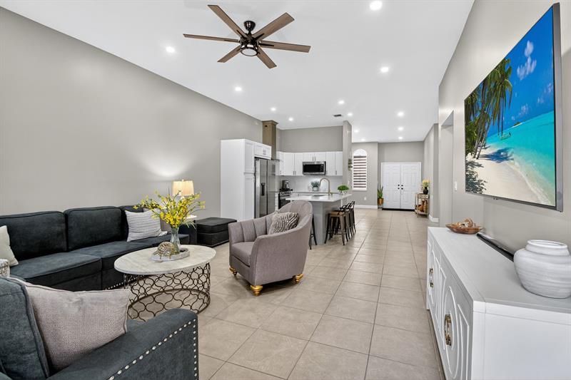 Step into this beautifully renovated 3BR/2BA home with a one-car garage, offering modern luxury and timeless style. Freshly painted interiors feature an open living and dining area and a stunning kitchen with quartz waterfall countertops and stainless-steel appliances. Both bathrooms are elegantly updated, and the spacious primary suite includes an oversized bath and walk-in closet. Enjoy a private, fully fenced backyard with a charming patio—perfect for relaxing or entertaining. Located in the highly sought-after POINCIANA AT SUNSET LAKES community with 24/7 security and minutes from parks, dining, shops, the library, and Baptist Health Hospital.