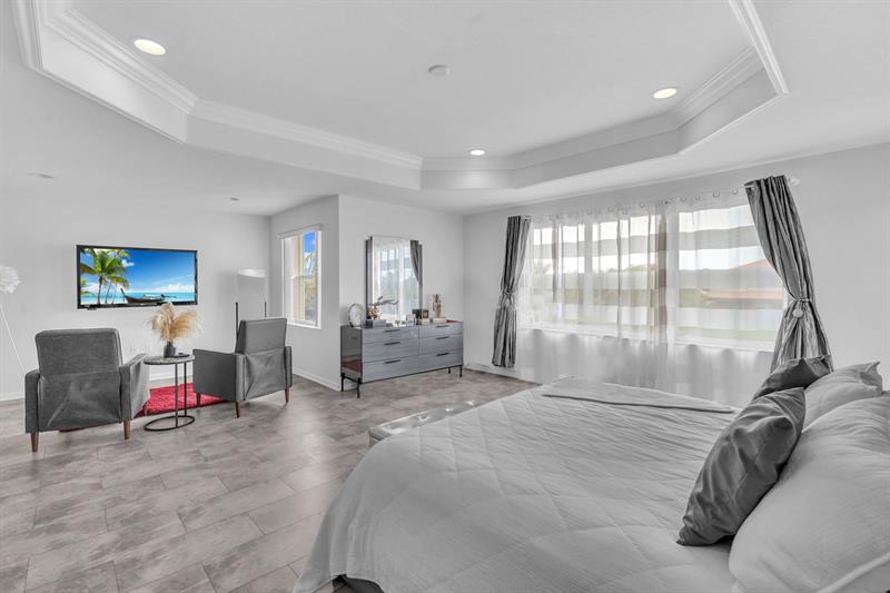 Beautiful 6BR/4BA Lakefront Home with Pool & 3-Car Garage!Spacious two-story home with a bedroom and full bath on the first floor. Features formal living/dining, large family room, and gourmet kitchen with granite counters, stainless steel appliances, and breakfast nook. Upstairs includes generously sized bedrooms and a luxurious primary suite with walk-in closets. Enjoy the screened patio, private pool, and peaceful lake view. Includes hurricane shutters and laundry room. Resort-style community with clubhouse, gym, pool, and playground. Close to top-rated schools, hospitals, shopping, dining, and major highways.