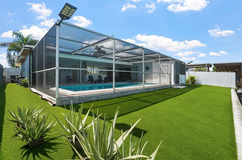 Fully remodeled pool home with water view. No expense has been spared. Roof is 5 years old, tankless water heater,new washer/dryer. New driveway and artificial turf throughout exterior. New pool pump and new windows. New kitchen and bathrooms. New electrical panel with breakers. Home can be used as a 4 bedroom or you can rent out the opposite side of the home as a 1 or 2 bedroom apartment. Seller offering up to $2000 credit toward buyer closing costs if buyer uses sellers preferred lender. Buyer is not required to use the preferred lender to purchase the property.