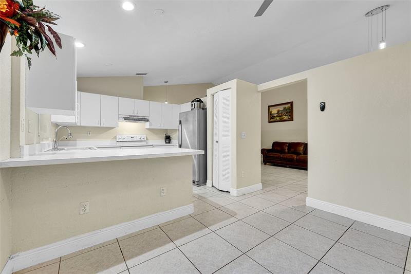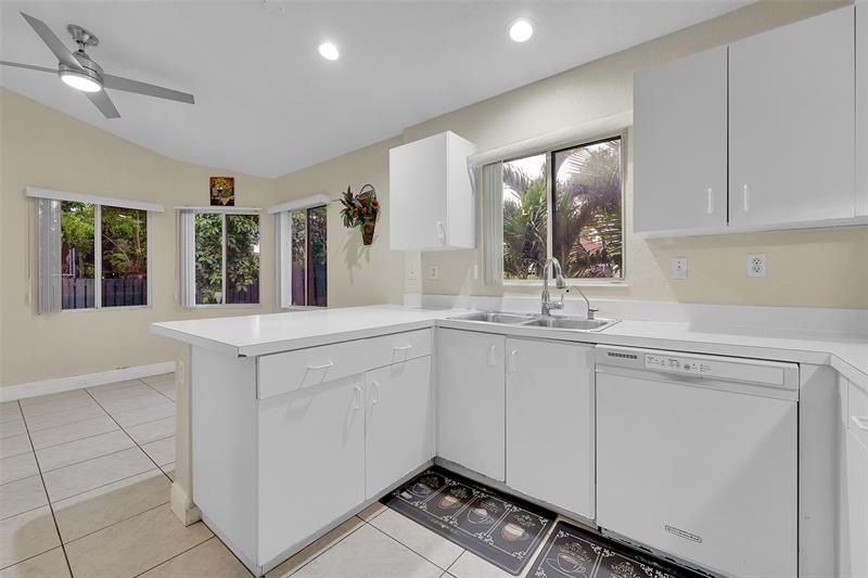 This beautiful 3 bed, 2 bath home sits on a corner lot with a 2-car garage and a 6-year-old roof. Bright kitchen features a breakfast area filled with warm morning sunlight. Updated bathrooms offer modern finishes making for easier mornings and relaxing evenings. Spacious primary suite fits a California king. Tinted windows help keep the home cool, and the 2-year-old washer and dryer add everyday convenience. Outside, a peaceful water view sits just to the right of the home, creating a serene backdrop for morning walks or evening unwinding. The side entry features a row of banana trees for a tropical touch, while the backyard includes a mango, banana, and soursop tree plus plenty of space for outdoor relaxing, gardening, or play. Schedule your private tour today!