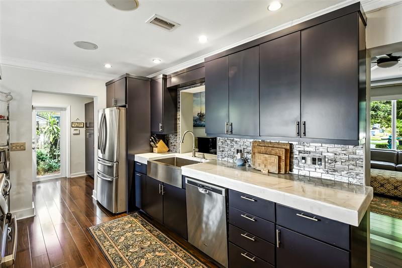 Price Improved! Discover the perfect blend of style, comfort, and South Florida living in this stunning remodeled 3-bedroom, 3-bath home located east of Dixie in a prime area of Oakland Park. The spacious front living room with vaulted ceiling opens to a modern kitchen, perfect for entertaining. Two en-suite bathrooms. Step outside to your tropical retreat with a heated saltwater pool with spa jets, screened patio, koi pond, fountains, outdoor pizza oven. Features include a bar room, impact windows and doors, tankless water heater, under-air laundry, irrigation on private well, 1 car garage. Minutes to beach by golf cart, Wilton Manors, hospitals, shopping, dining and zoned for top-rated Floranada Elementary. Make an offer, make this your lovely home!