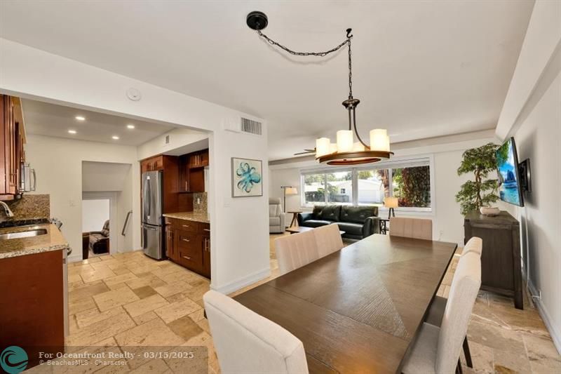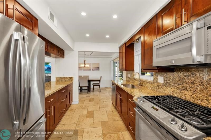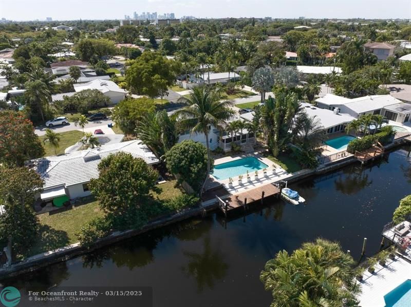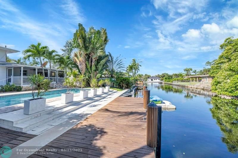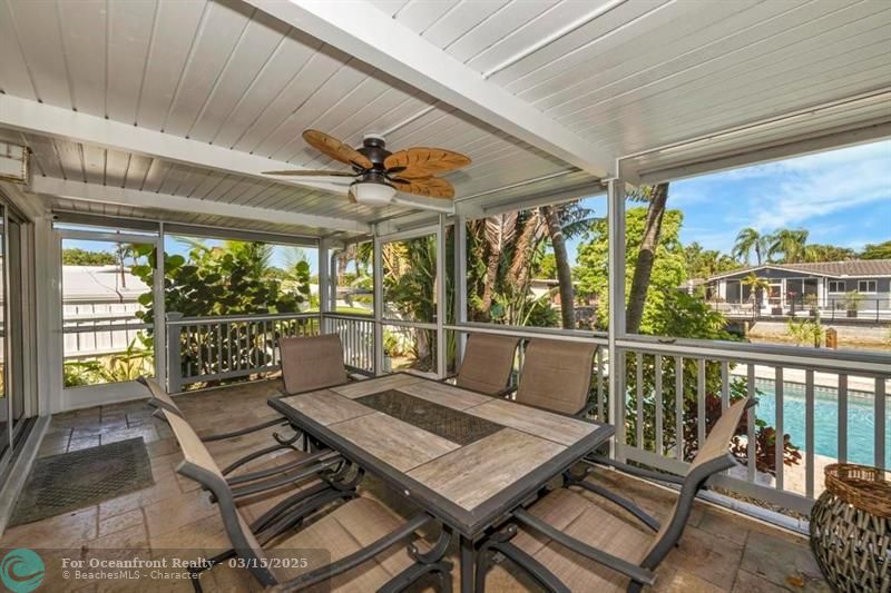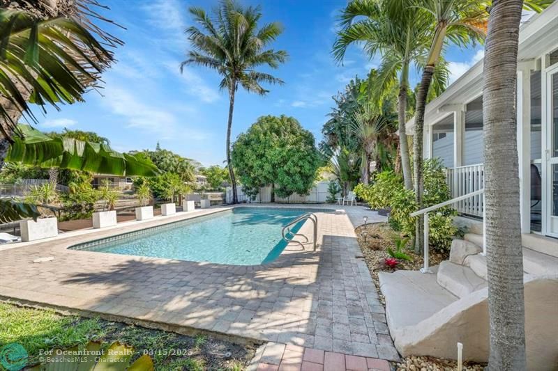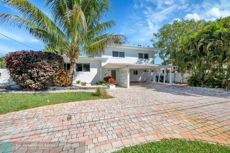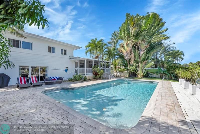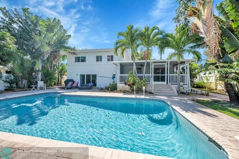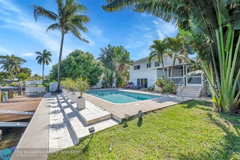 Coastal Gem with 70 Ft of Water Frontage. Remodeled single family home with newer seawall and hurricane impact windows and doors for peace of mind. The home boasts a three-level floor plan, featuring an upgraded kitchen with wood cabinetry, stainless steel appliances, and a gas stove. With 3 bedrooms and 2.5 baths, the bright and airy interior is designed for comfort and style. Step outside to your private tropical oasis, where tall palms, mango, lime, and banana trees surround a screened-in patio and an oversized saltwater pool, all overlooking the serene Cherry Creek Canal. The curb appeal is undeniable, with lush landscaping and ample parking in the carport and circular driveway. Nestled on a quiet cul-de-sac in a sought-after neighborhood, this home is a rare waterfront find!