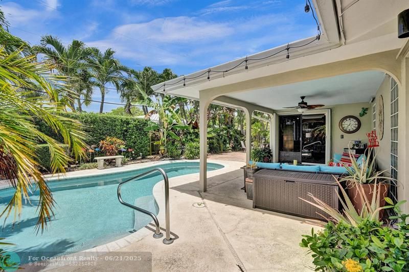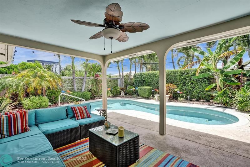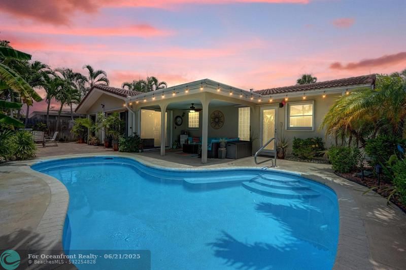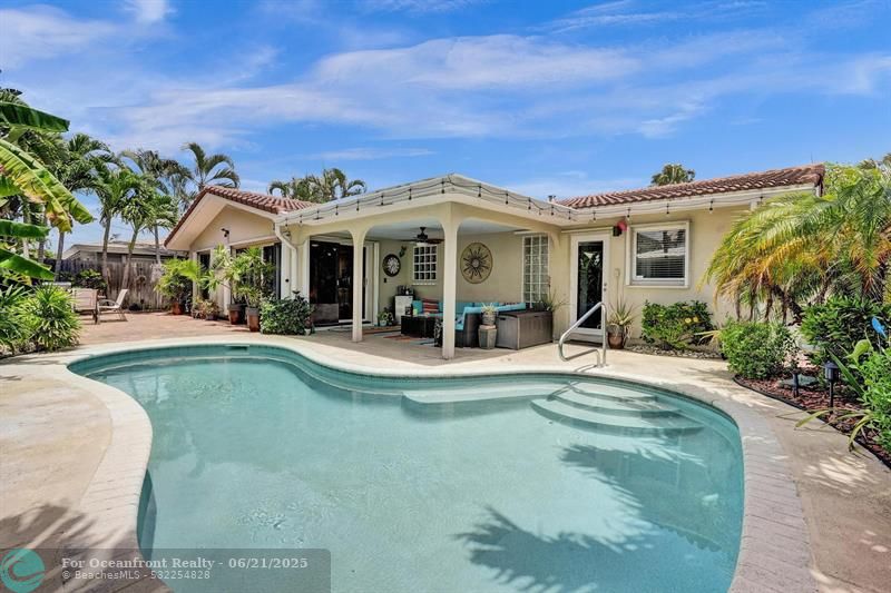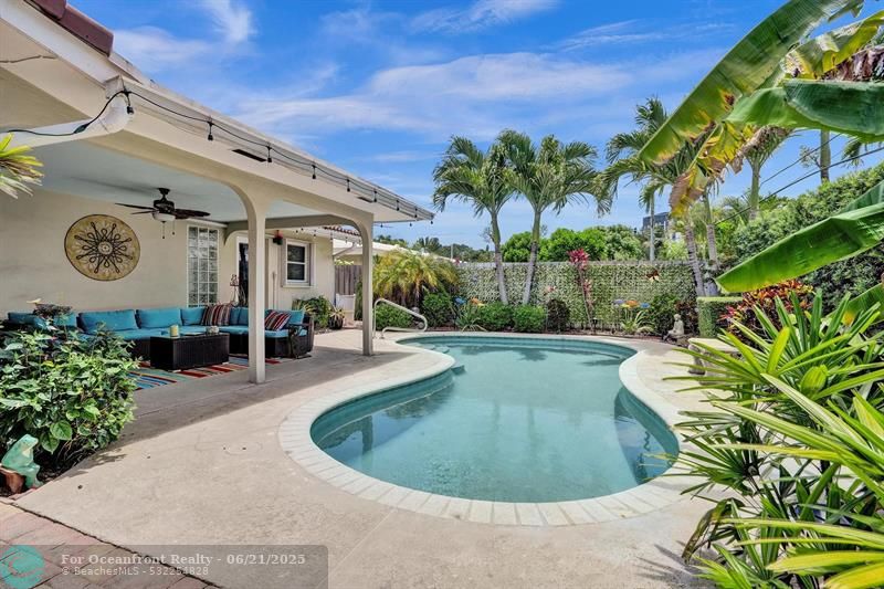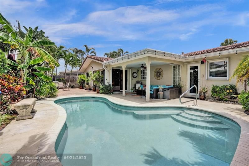 Effortless South Florida living with this beautifully maintained 3-bedroom, 2-bath home in desirable east Oakland Park. This home places you minutes from sandy beaches, Wilton Drive, local parks, vibrant dining spots, and boutique shopping. Designed for comfort and casual elegance, this home boasts a large kitchen ideal for entertaining, a bright Florida room perfect for morning coffee, and a layout that flows seamlessly to the backyard oasis. Enjoy sunny days in the heated swimming pool, dine al fresco on the large patio, or relax under the shade of the poolside lanai. With an attached garage, whole home generator, and a welcoming front porch framed by vibrant landscaping, this home blends convenience, charm, and lifestyle with ease. All in a neighborhood with a friendly, relaxed vibe.