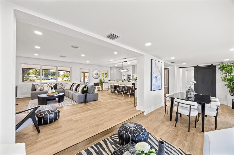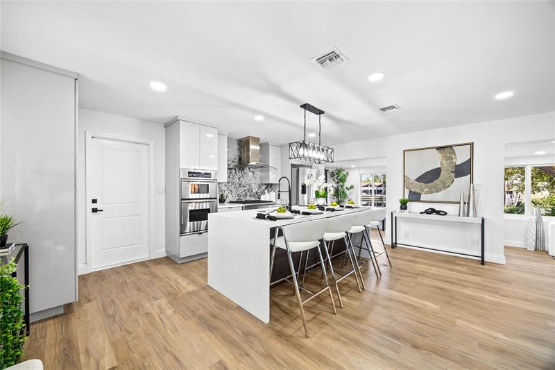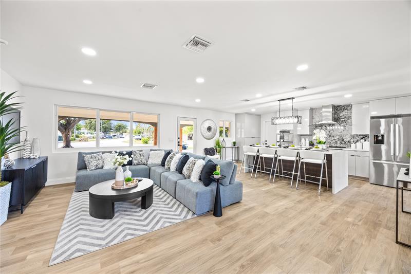 Fully renovated waterfront home with stunning canal views! This open-concept beauty features a new roof, new AC, new plumbing, and hurricane-impact windows and doors. The designer kitchen boasts waterfall quartz countertops, custom cabinetry, and premium finishes. Enjoy elegant flooring, high-end design throughout, and tranquil waterfront living. Every detail has been thoughtfully updated for modern comfort and style—move-in ready and built to impress! OWNER FINANCING 25% DOW