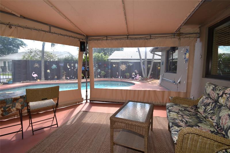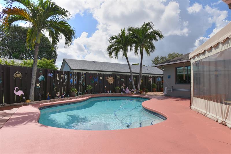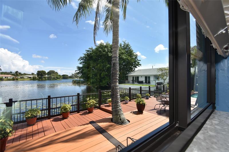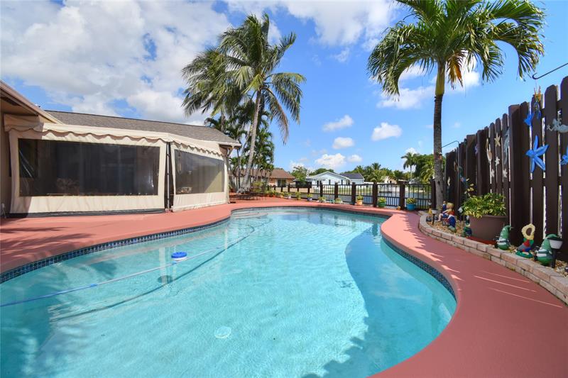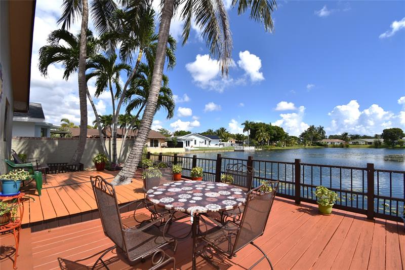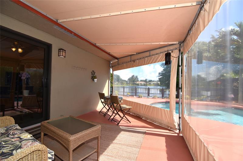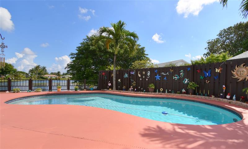Your private backyard oasis features a sparkling pool and covered patio, overlooking the tranquil lake, creating an ideal setting for both peaceful relaxation & elegant entertaining.