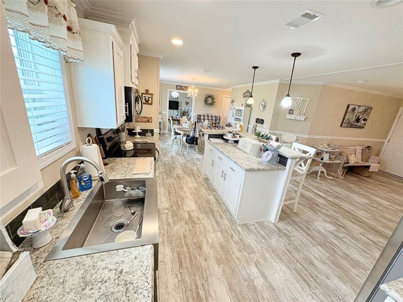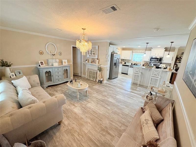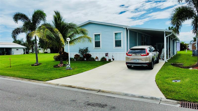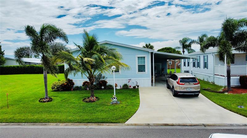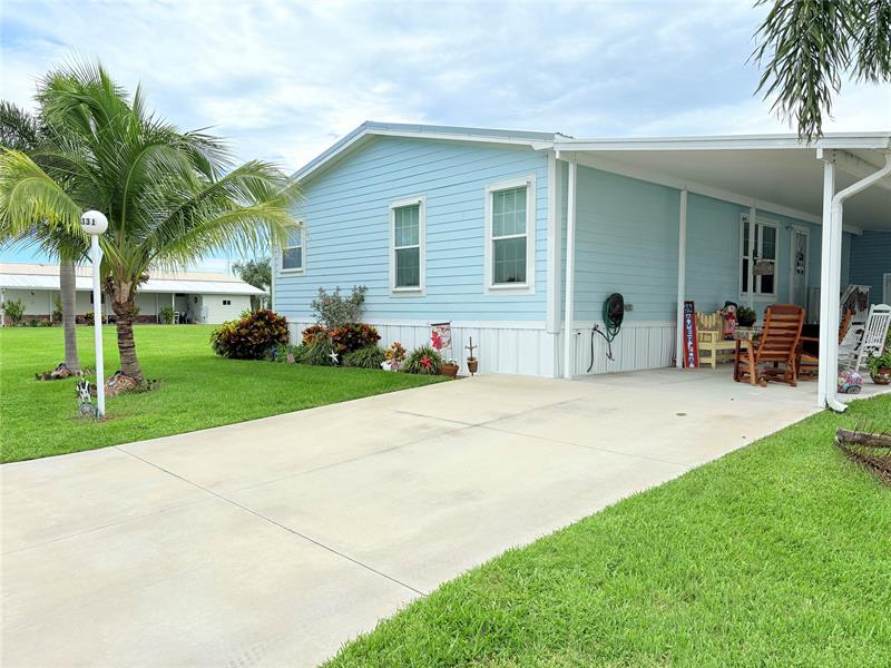 Welcome to Palm Village Ranch, an exclusive 55+ community offering a harmonious blend of tranquility, safety, and security. This 2019 3 bedroom, 2 bath double-wide manufactured home exemplifies both elegance and country-inspired charm. Boasting over 1750 sq ft of living space and enhanced safety features such as, durable metal roof, hardy board siding on all exteriors, double pane insulated windows, hurricane shutters, and upgraded R-30 insulation to promote energy efficiency. The residence also offers a covered carport, an enclosed storage room/shed, a screened porch, as well as a 30-amp plug and dedicated electrical panel equipped for generator use in case of a power outage. This meticulously maintained property is move-in ready and ready for you to call it home!
