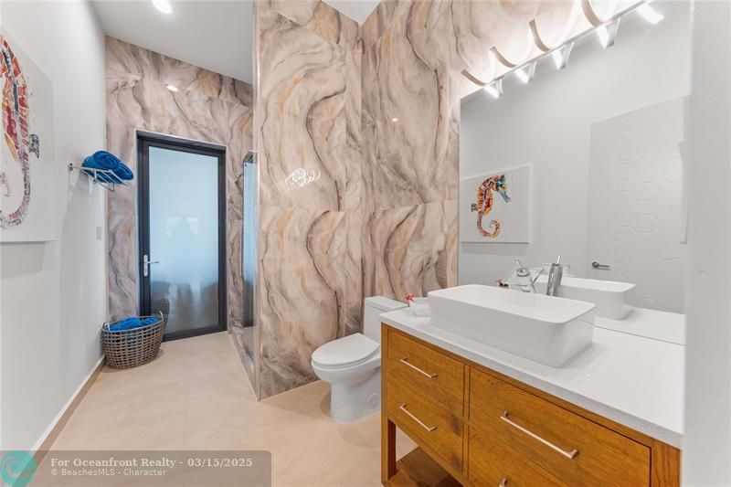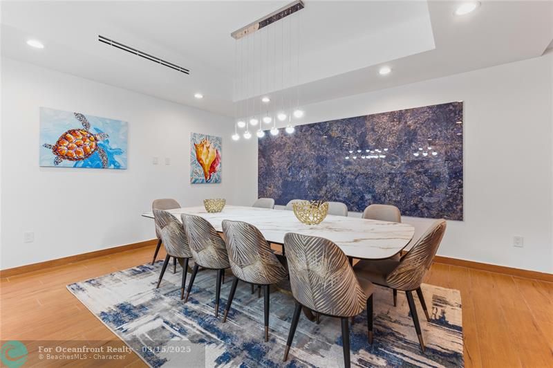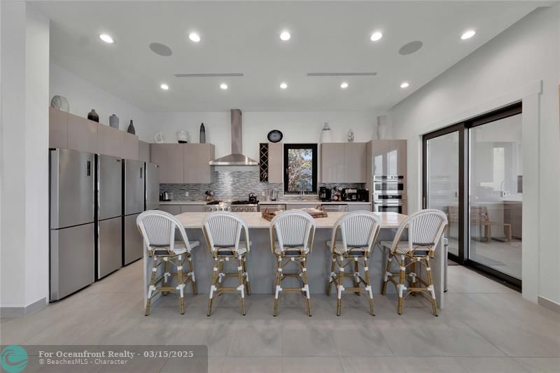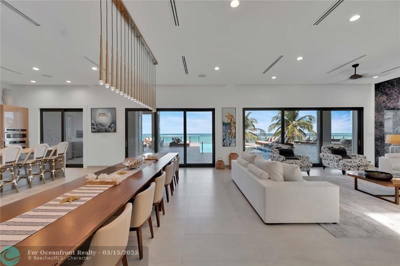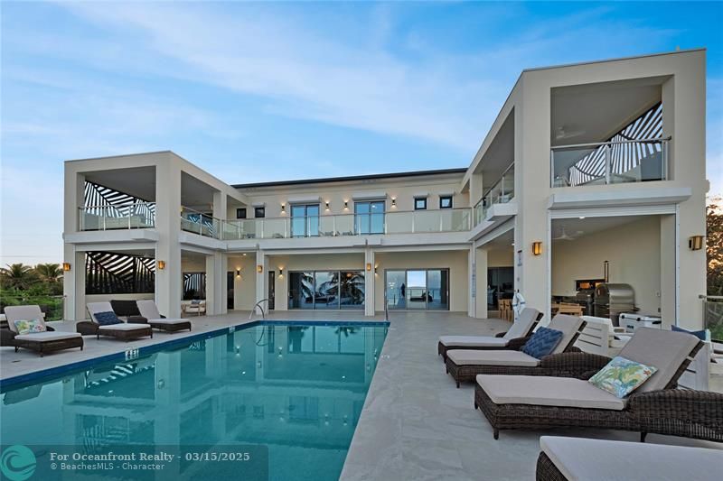 Welcome to Timeless Paradise! Discover unparalleled Caribbean grandeur and indulge in luxurious island living at this exclusive vacation villa, nestled in the prestigious Rum Point neighborhood. This beachfront paradise is more than just a home, it's an experience you won't soon forget. This newly constructed, 3-story ocean estate stands 18 ft above sea level and spans an astounding 15,000 sqft. All 11 bedrooms and 13 bathrooms were meticulously designed with lavish fixtures and designer furnishings. Upon entering through the grand entryway, you'll be greeted with elevated panoramic ocean views that will leave you breathless. The villa's open floor plan, punctuated with 11-ft ceilings and a stunning blue granite accent wall, offers seamless flow from the kitchen, dining, and living areas.