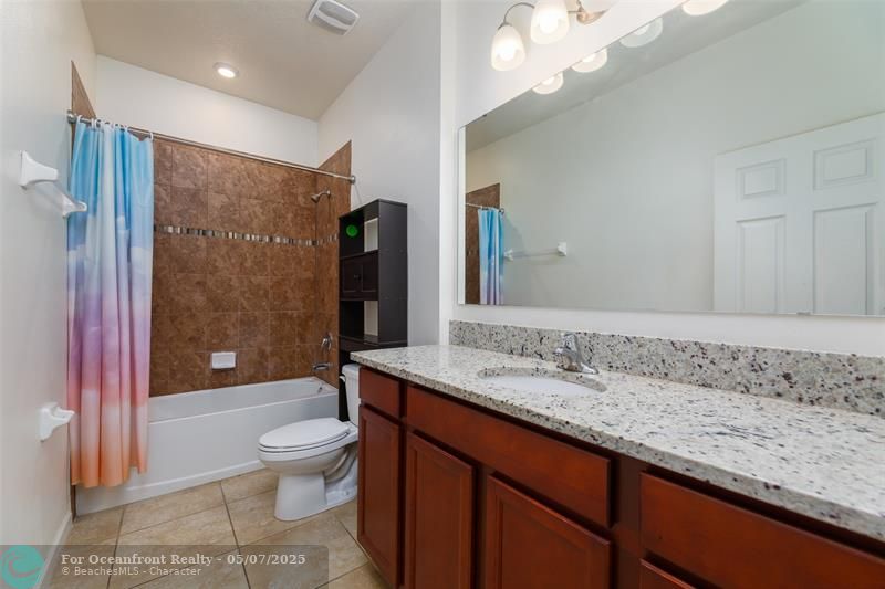 MOVE IN READY Beautiful POOL home sports 5 bedrooms, 4 bathrooms, 3 car garage single family house for sale. The entrance door opens into the formal living and dining area of the home which flows into the den and kitchen. This home has a huge eat-in kitchen with extended countertop for dining and entertaining. There is 1 bedroom and a full bathroom on the second floor for the convenience of your guests and in-laws. The large exotic salt water swimming pool and spa with patio area has a screen enclosure for privacy and relaxing.