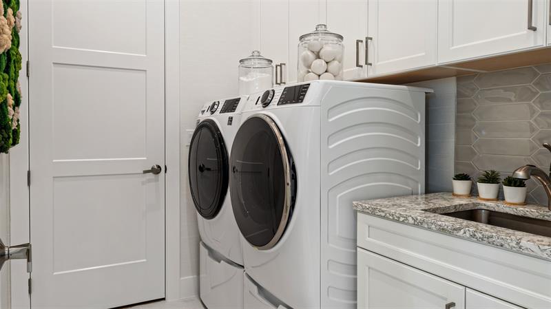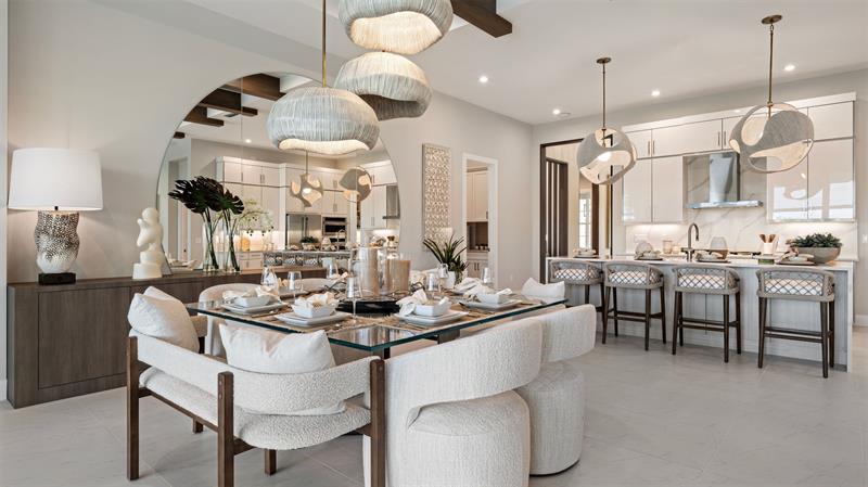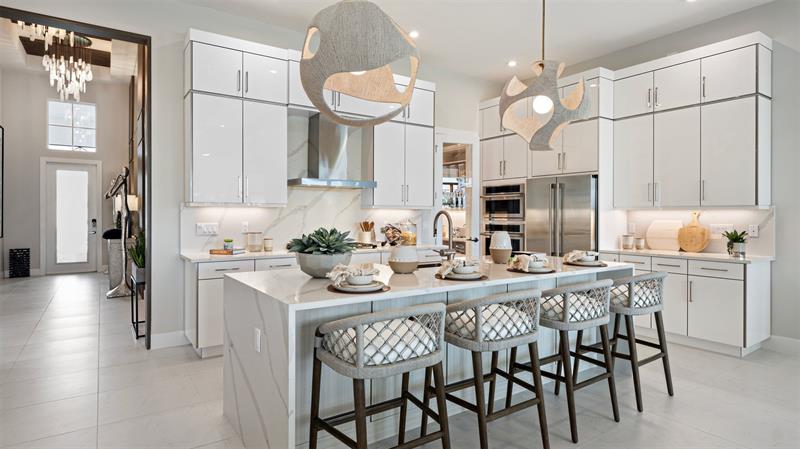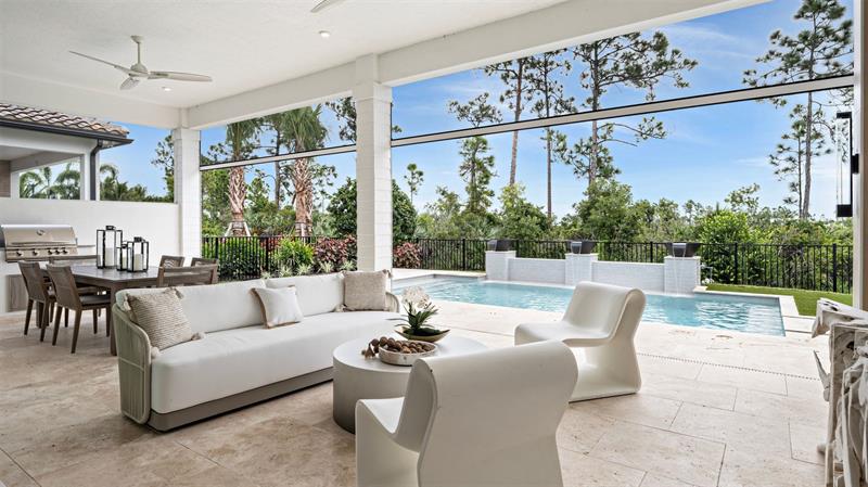 *NEW CONSTRUCTION* Fully Furnished, Decorated Paige Model for sale. This professionally designed and decorated builders' model is being offered for sale with everything you see included. A custom pool overlooking a preserve view, within the gated community of L'Ambiance. This Paige model, built by Kolter Homes has custom trim work and lighting throughout the home. A built-in closet and built-in pantry, as well as an upstairs bonus room with an additional bathroom and closet complete this 3-bedroom, 4 bathroom, 3-car garage, bonus room home. The owners' suite and lanai have been extended 4'. The lanai opens up through a 16' wide slider to a built-in outdoor summer kitchen and a custom pool.