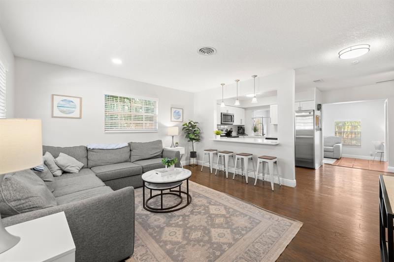 Discover your oasis in Palm Beach Gardens! This updated single-story home offers 3 bedrooms, 2 bathrooms, and an open-concept kitchen, living, and dining area. A bright sunroom with a built-in workstation adds charm and functionality.