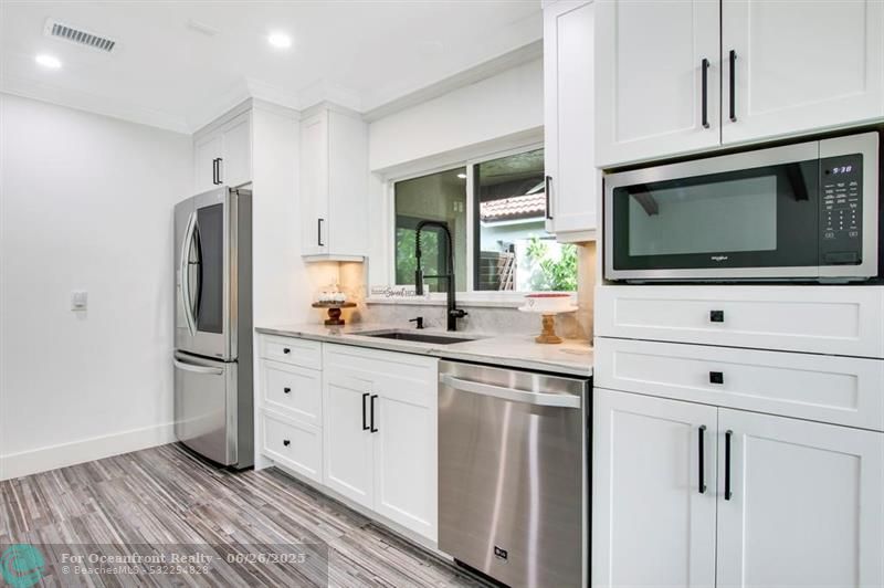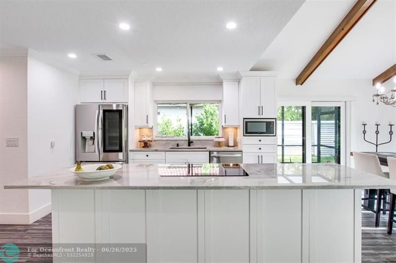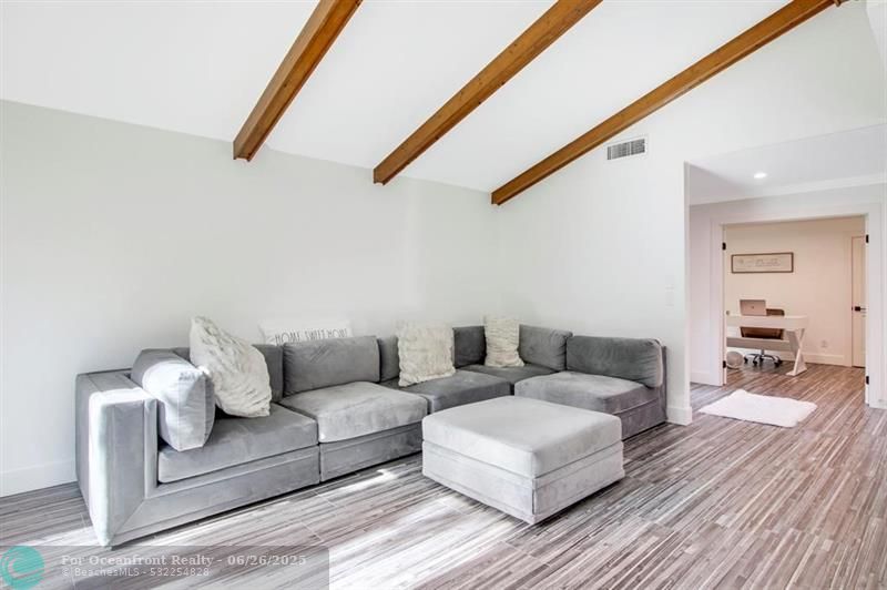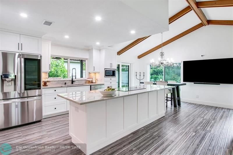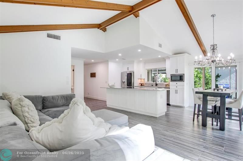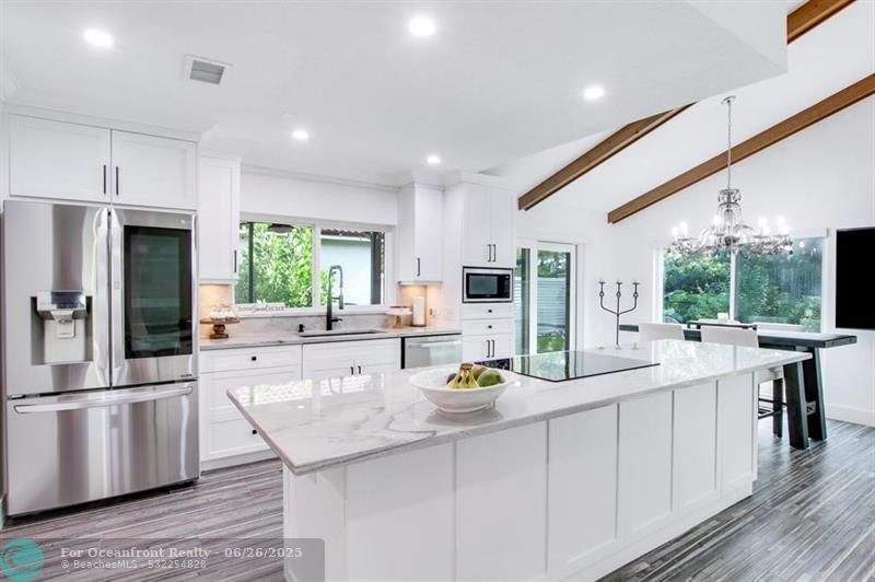 Must see, fully renovated home in Ironwood at PGA National! Featuring vaulted ceilings with wood beams, impact windows and doors, new interior flooring, updated open kitchen, featuring LG appliances, including an oversized LG washer/dryer. Recessed lighting throughout. Both bathrooms fully updated, closet build outs, new door castings and solid core interior doors. Custom window treatments throughout. New epoxy garage floor, new driveway and new screened in patio and pavers. PGA National membership optional. Centrally located in the neighborhood for easy access to shops, restaurants and highways. A-rated school district.