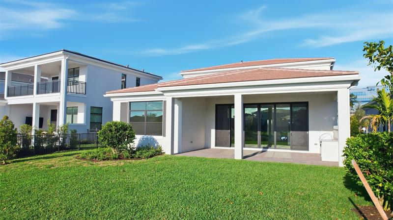 Move In Ready** This brand-new Mondrian floorplan, is situated on an interior waterfront homesite within the gated community of Artistry Palm Beach. This home offers 4 suites, each with ensuite bathroom, an additional half bathroom and a split-3 car garage. Also includes gas cooking in the kitchen, 2nd tier upper cabinets, quartz backsplash, a 3'' quartz kitchen island with waterfall ends and under cabinet LED lighting. The great room includes a 20' wide by 10' tall sliding glass door and the loggia has been extended 4'. The loft has been upgraded to an optional larger game room with an added wet bar. There is an added outdoor summer kitchen.