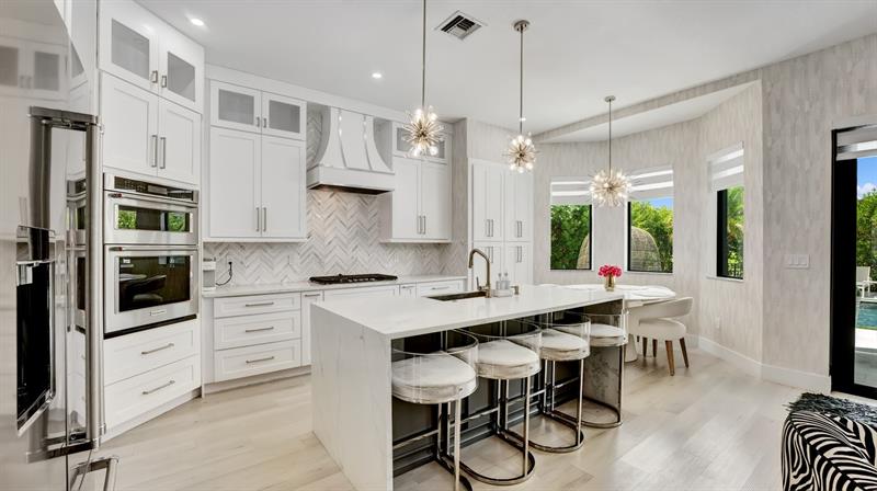 Experience elevated lakefront living in this fully renovated, designer-upgraded 5-bedroom, 4-bathroom home in the prestigious gated community of Cascata at MiraLago. This turnkey residence offers the perfect combination of modern elegance, smart functionality, and resort-style amenities. Step into a light-filled, open-concept layout featuring soaring ceilings, designer flooring, high-end finishes, and custom wallpaper throughout. Custom kitchen perfect for entertaining! Step outside into your private, resort-style backyard retreat—complete with a custom pool, full outdoor kitchen, maintenance-free turf lawn, and a premium built-in Sonos sound system for the ultimate entertaining experience. Too many upgrades to list including a full house Generac generator and outdoor security cameras.