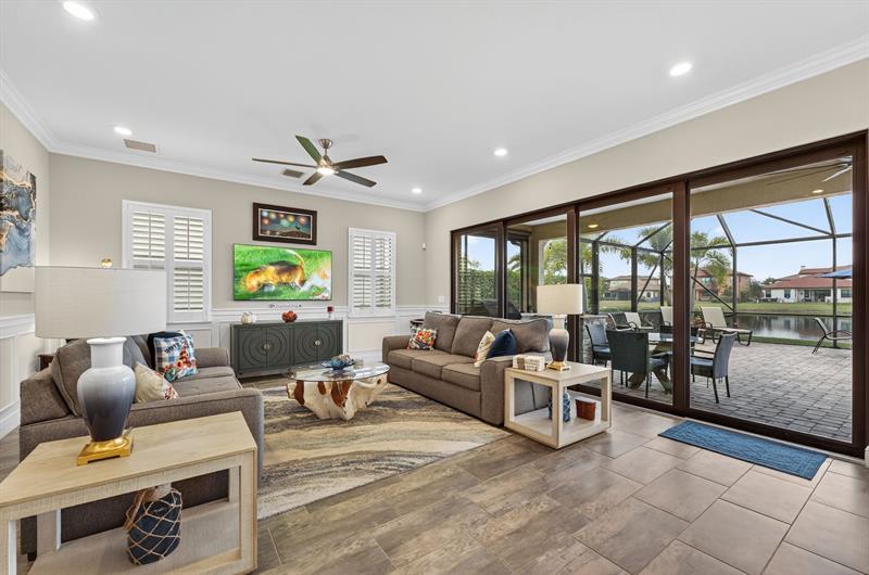 Experience lakefront living in this exquisite Sycamore estate in highly desirable Parkland Bay. Elevated with premium design selections, this 2 story masterpiece showcases new flooring, plantation shutters, gorgeous crown molding for a clean, modern aesthetic. Beyond the grand living spaces, the home delivers exceptional functionality with walkin closets in every bedroom and remarkable storage throughout. The chef inspired kitchen impresses and includes a unique built in dining table, creating the perfect blend of style and convenience. The expanded Lanai is an entertainers dream, featuring a builtin grill and refrigerator. With all impact windows and doors and a whole home generator this property offers unmatched peace of mind. This home truly blends luxury, comfort and functionality.