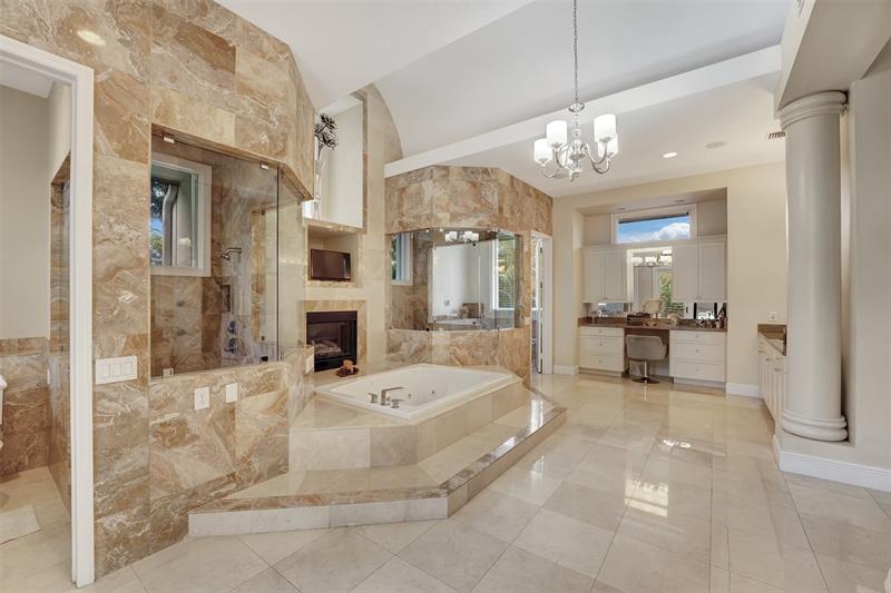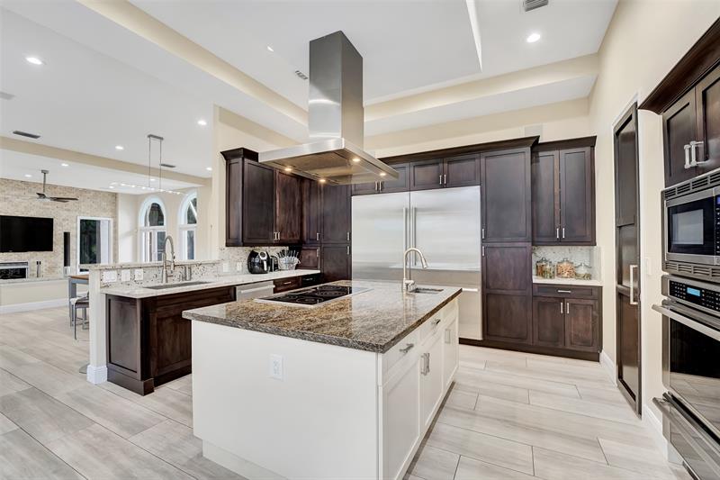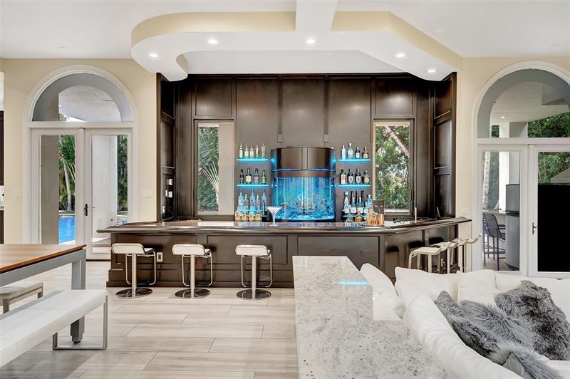 Magnificent mixture of mid-century modern and contemporary architectural masterpiece, 11,794 total square feet on 2.2 acres of private gated compound. Walk in the foyer to dramatic 30 foot ceilings and a 600 gallon jellyfish tank. Hi-end stainless steel appliances, gourmet kitchen, granite countertops, hardwood & marble floors throughout the living area! Large den, office & recreation room. Very nice in-law quarters completely separate from the main house with a full kitchen. The main attraction is the 140,000 gallon swimming pool, jacuzzi with waterfalls with a fire feature, & a swim-up bar. Large windows everywhere, sun filled in every room. Private patios w/ views of pool, land, basketball court, and much more. If you love to entertain this is the home for it, it is your own resort!