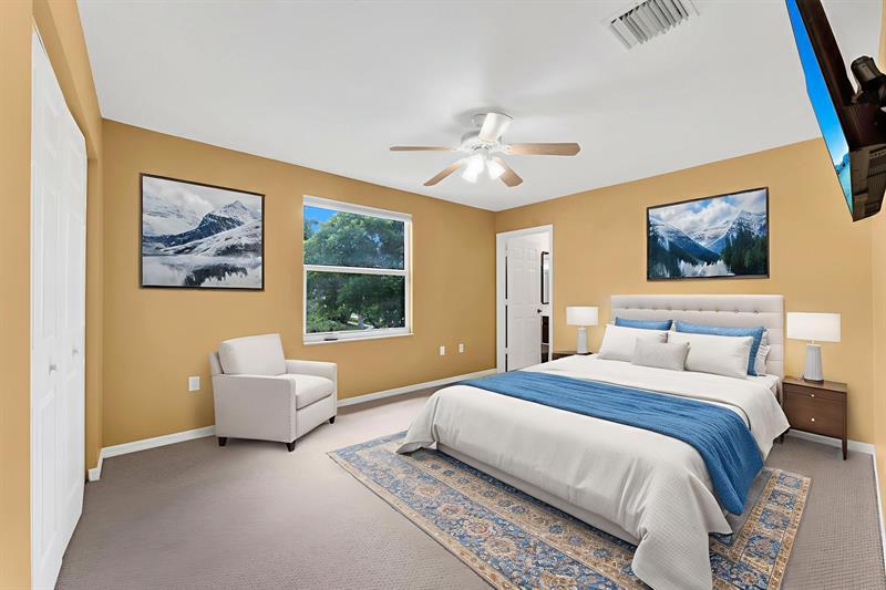 Welcome to the Kingston Plus Model Home—4BD/3.5BA with a 3-car garage & circular driveway in a gated, resort-style community. This beautifully maintained home has been freshly painted inside and out. It features hurricane-impact windows, sleek 2x4 porcelain tile on the first floor, and luxury vinyl upstairs. Dual staircases lead to a 500+ sq ft loft—perfect for a playroom, home office, or 5th bedroom. The gourmet kitchen boasts high-end finishes, brand-new appliances, and two full-size refrigerators(one in the kitchen, and one in the garage). Other highlights include security cameras, smart locks, electric vehicle charging station, upgraded garage door openers, a custom iron front door, and two new Carrier A/C units.