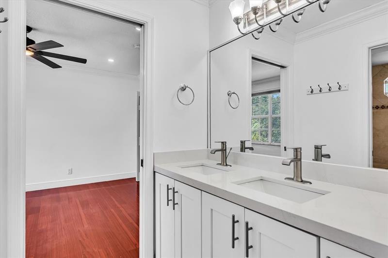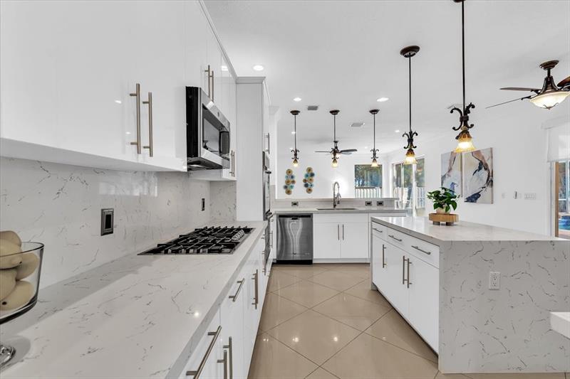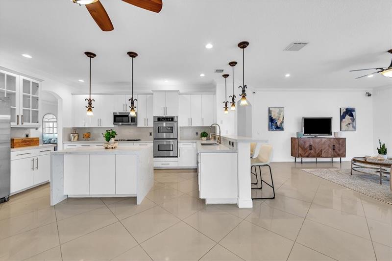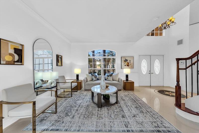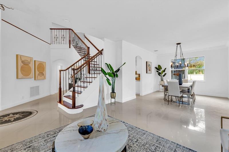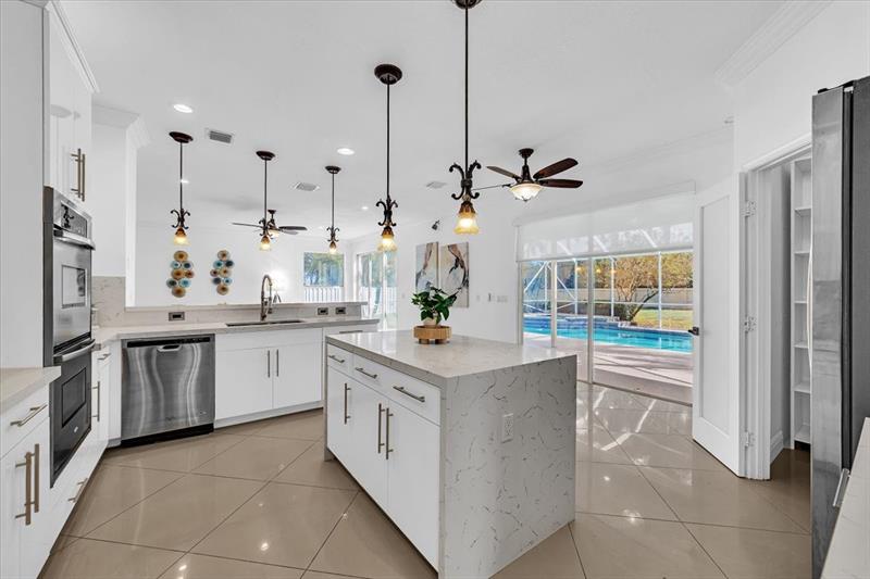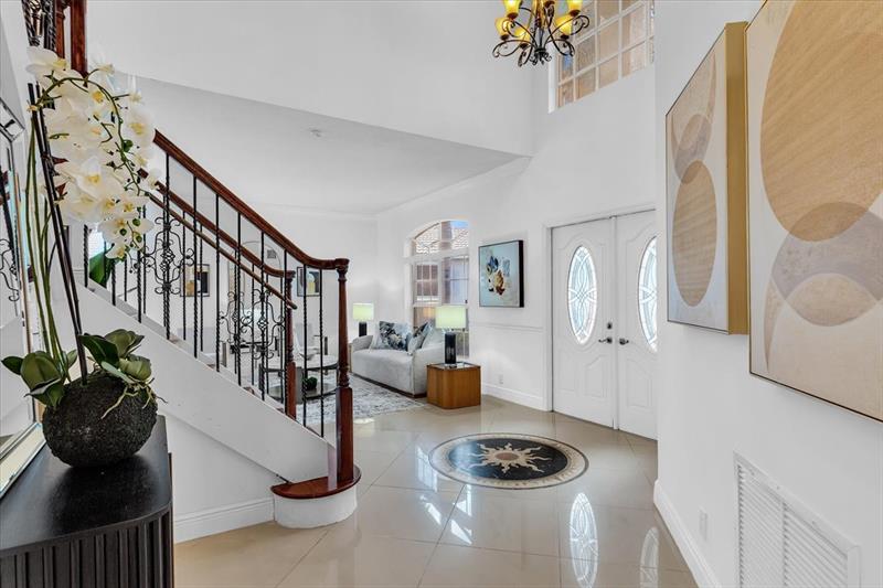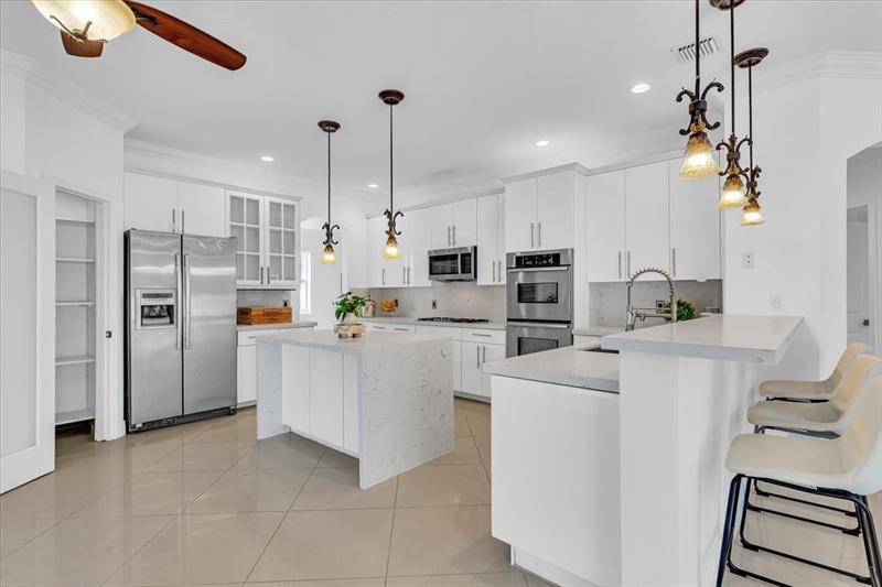Stunning Grand Cayman model in Pembroke Falls, with a beautiful screened pool, built-in grill, and fenced backyard on an oversized lot—one of the biggest in the community! This grand estate features five bedrooms, four bathrooms, a three-car garage, custom closets, beautiful porcelain floors downstairs, complemented by wood floors upstairs. The upgraded kitchen is equipped w/ a double oven, modern white cabinets, a pantry room, and quartz countertops/backsplash, plus an island and snack counter adding to functionality. 1 bed and 1 full bath downstairs. Master suite with a sitting area and custom closets complete this majestic home. Located in a prestigious gated community with state-of-the-art recreation center, pool, tennis courts, clubhouse, pickleball, basketball, and much more.
