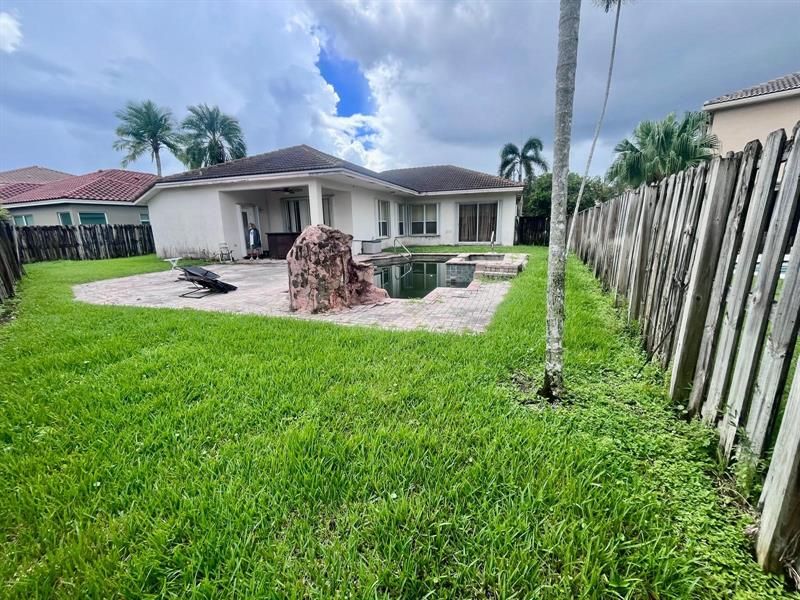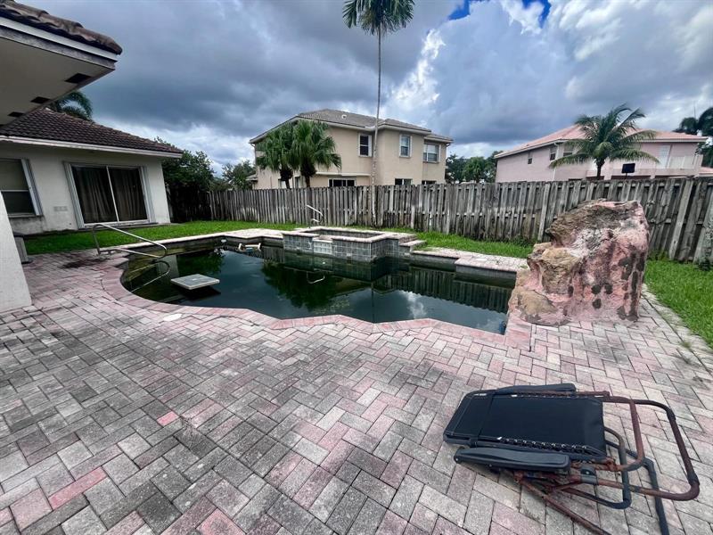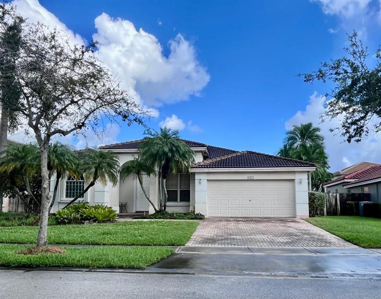 One-story 4-Bed/3-Bath/2-Car Garage pool home in The Pointe at Pembroke Isles! Features include an open floor plan, soaring ceilings, formal living & dining rooms, and a kitchen with wood cabinetry, white appliances & breakfast bar. Spacious primary suite overlooks pool/spa and offers tray ceiling, dual vanities, tub, separate shower & oversized walk-in closet. Extended covered patio perfect for entertaining. Updates: new roof, hurricane shutters, water heater & laundry room. Resort-style community w/pool, clubhouse, fitness, tennis, 24-hr gated security. Maintenance includes lawn, AT&T Internet, ADT alarm & cable.