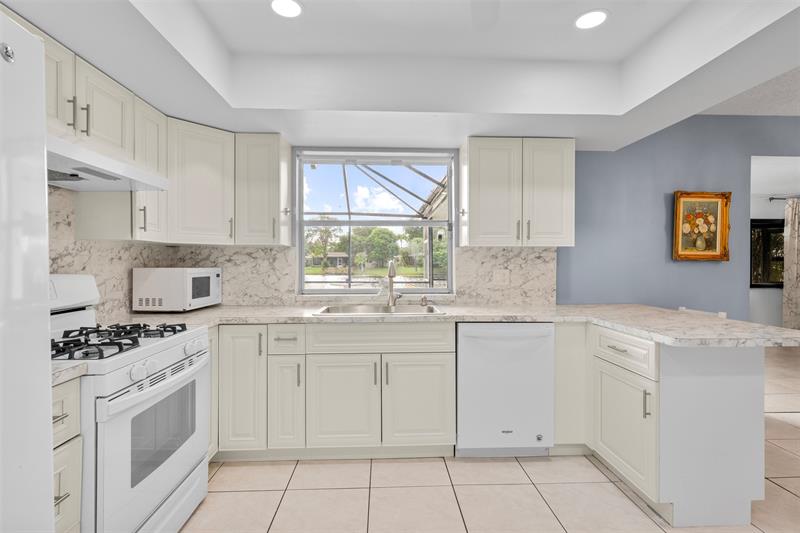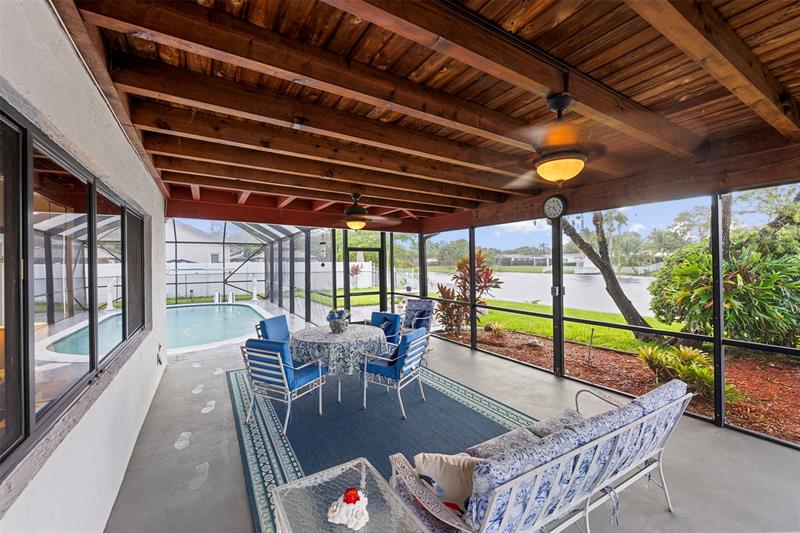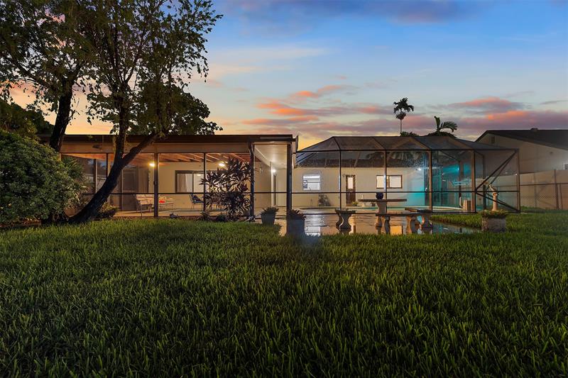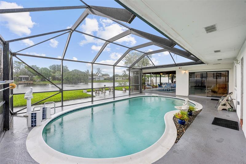The care shows in every detail with just ONE proud owner on this oversized 11,000 sq ft lot. Make this your private oasis with the lush landscaping, sparkling pool, & lake views. The kitchen was remodeled in 2023. BONUS: gas stove! Impact windows, A/C, water heater, & tiled roof all updated in 2017, and the flat patio roof was redone in 2023 for added peace of mind. 2-car garage, freshly painted W/central A/C, flexibility for a workout area, workshop, etc. Other perks: upgraded electrical panel, renovated shed, cleaned underground plumbing, and PVC water pipes. Generous outdoor space, this home could easily be converted into 3 or 4 bedrooms, giving you room to grow. Near top-rated schools, this rare gem blends comfort, style, and versatility—come see the pride of ownership for yourself!