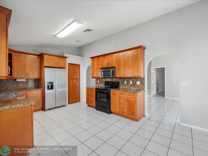 Stunning Move-In Ready Home in West Pembroke Pines! This spacious 5-bed, 2.5-bath home boasts an open-concept design. The modern kitchen features granite countertops, stainless steel appliances, and sliding doors leading to a fenced backyard perfect for entertaining! 1st floor convenience. Move in with confidence with a full house automatic generator, fresh interior paint, accordion shutters, brand new vanities in all bathrooms. In home fire sprinklers. Located in Emerald Springs at Silver Lakes, a gated community with parks and picnic areas, this home offers the perfect blend of comfort, style, and convenience.