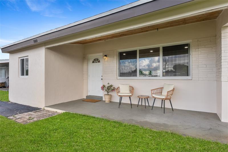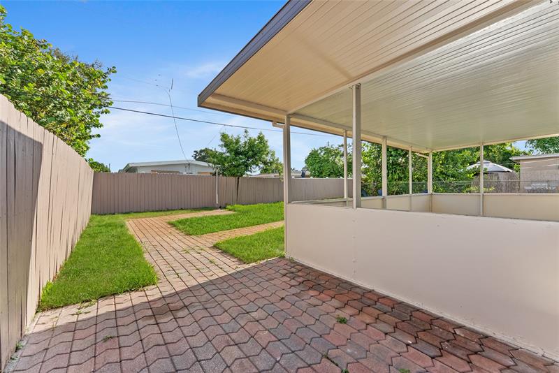 Fully renovated and move-in ready! This bright, open-concept home features a new kitchen with shaker cabinets, quartz countertops, stainless steel appliances, and a large peninsula with seating. Enjoy a seamless flow from the kitchen to the living and dining areas—perfect for entertaining. Modern finishes throughout include luxury vinyl flooring, updated lighting, and a stunning bathroom with a walk-in shower and illuminated mirror. The spacious covered patio overlooks a large fenced yard with a fire pit and with plenty of room for a pool. New roof, impact windows, and updated systems add peace of mind. Conveniently located near shops, schools, restaurants, and major highways!