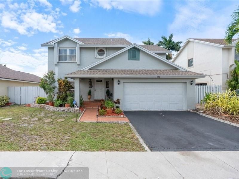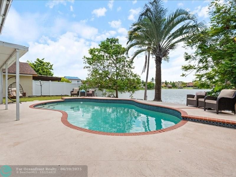 Turn-key 4BR/2.5BA lakefront pool home in Pembroke Pines with major 2025 updates so you can move right in. NEW roof, fresh interior/exterior paint, HVAC, fully renovated baths, new carpet and wood floors, stainless appliances, updated garage with new opener and pool pump. Main level features tile floors, sunken living room with recessed lighting, dining area, breakfast nook and remodeled kitchen with 42" wood cabinets and granite counters. Upstairs bedrooms include a roomy primary suite with walk-in closet, Roman tub and separate shower. Enjoy resurfaced pool, covered lanai and peaceful lake views framed by mango and coconut trees. 2024 water heater and plumbing updates. Low-HOA community near schools, parks and shopping.