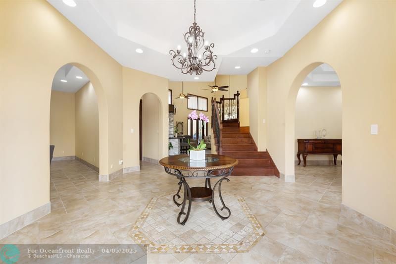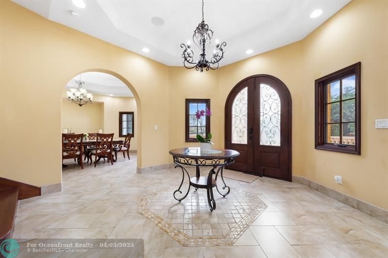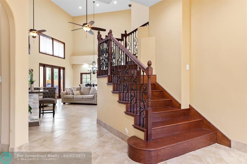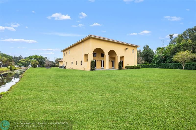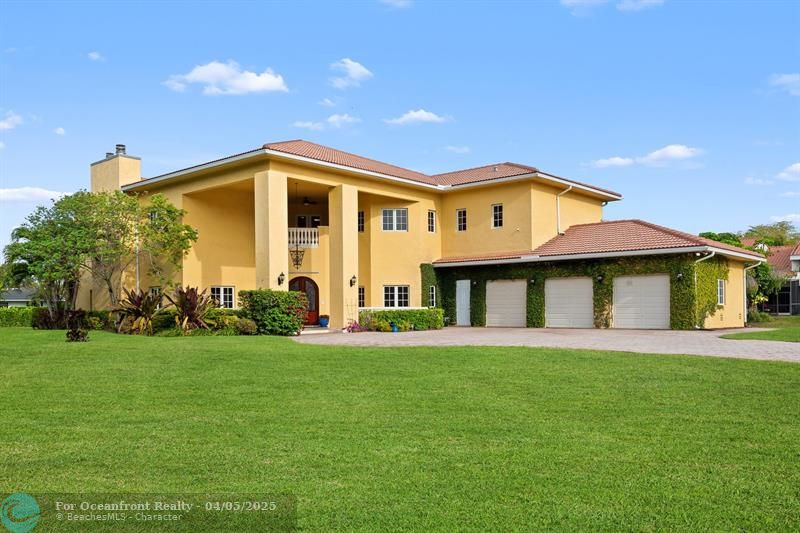 This home, lovingly maintained in pristine condition by its original owners, is now available for its first resale since construction! Offering luxury and convenience, you'll find striking oak wood doors & banister with a winding staircase, a primary suite that features a private balcony & walk-in closets. Other notable features include high-end custom finishes, Pella impact windows, tankless water heater with recycling pump, central vac, 23-ft ceilings, & R30 insulation for energy efficiency. The backyard offers potential for a custom pool, outdoor kitchen, & tennis courts. Lush Areca palms line the canal, enhancing privacy and adding a tropical feel. Ideally located near I-595, I-75, & 869, commuting is easy. A true gem, blending modern amenities with timeless elegance.
