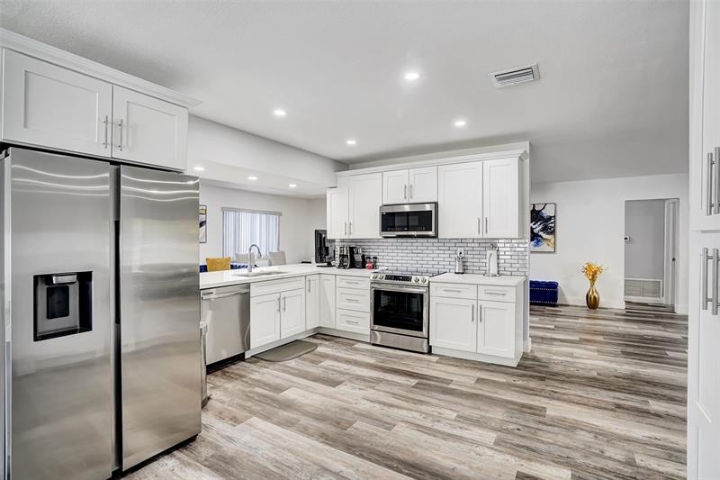 This stunning 3-bedroom, 2-bathroom home with office and den. This is a great location as it’s the last house on a cul-de-sac right across from Heritage Park. With an oversized lot that offers plenty of room for a pool, RV, Boat or to build an addition, this gem boasts over 2300 square feet of living space. Recently updated with a new roof and a redone kitchen, this home features stainless steel appliances, quartz countertops, and a modern look. Doors, sliders, garage and most windows are impact. The new fence encircles the property, complete with an automatic rolling gate on one side of yard & double door gate on other side of fence. No HOA restrictions, making it an ideal investment opportunity with the option to Airbnb or rent immediately. This property has ample parking for vehicles
