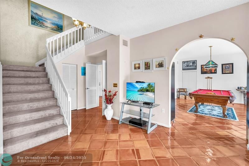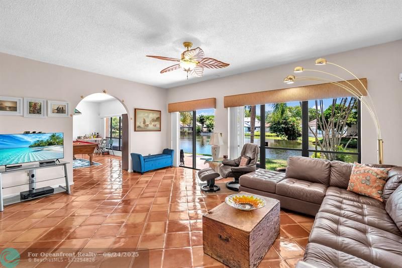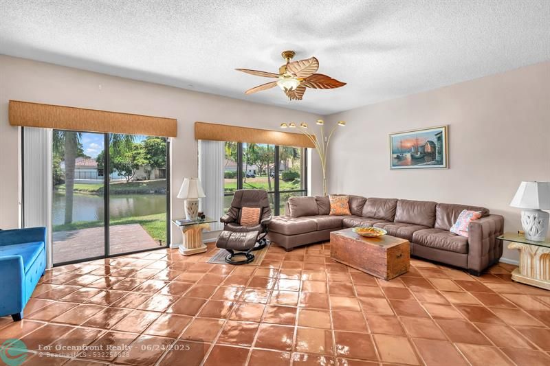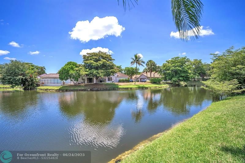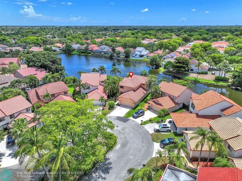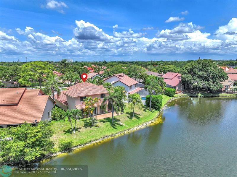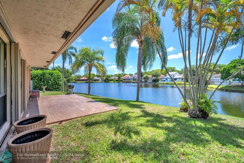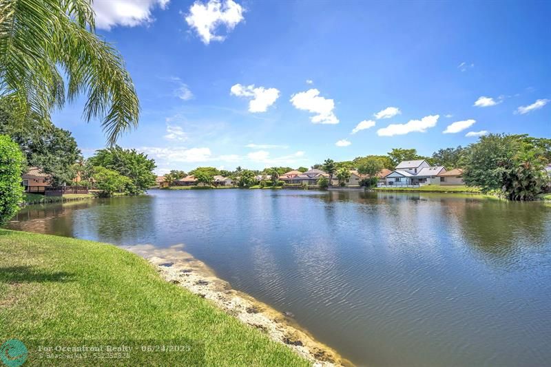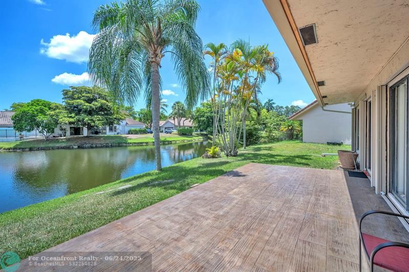 Spacious Lakefront culdesac 4/3 home with beautiful relaxing views on a pie shaped lot. This is a well cared for home with tile on first floor, open layout perfect for entertaining. Kitchen has newer appliances, cabinets, and granite countertops. A full bedroom and bath on the first floor/guest suite or office area. 3 bedrooms and 2 baths upstairs w/spacious rooms and walk in closets. Extra large stamped concrete patio perfect for sitting and enjoying the lovely water views. Larger lot with side yard w/room for a pool. Exterior features Gutters, Impact garage and front door, impact windows upstairs and accordians shutters down stairs. Gated low maintenance community in excellent convenient location.