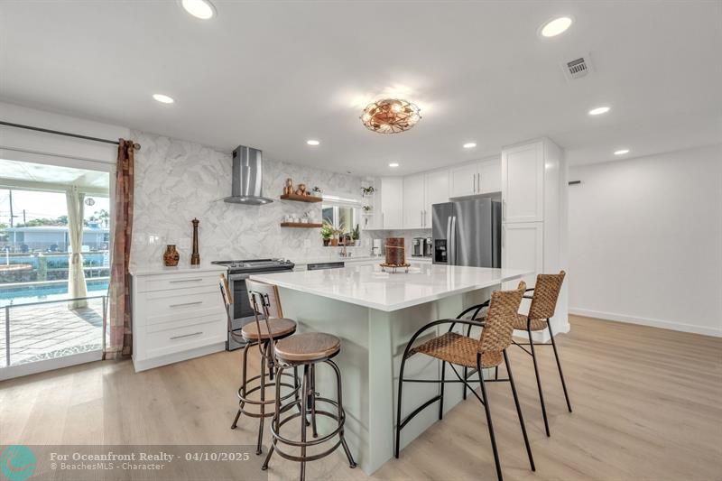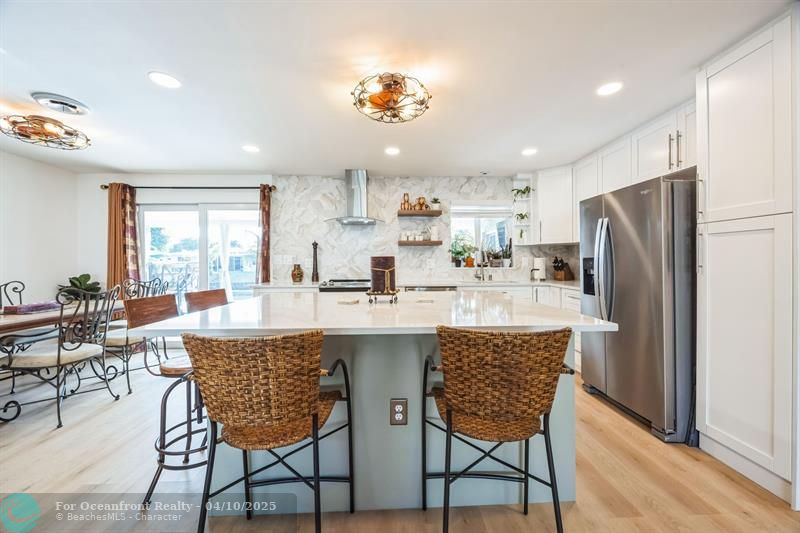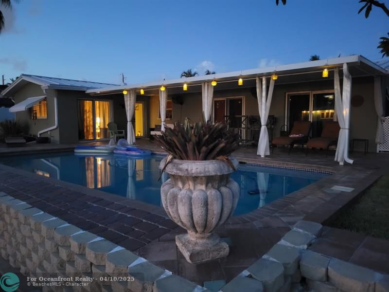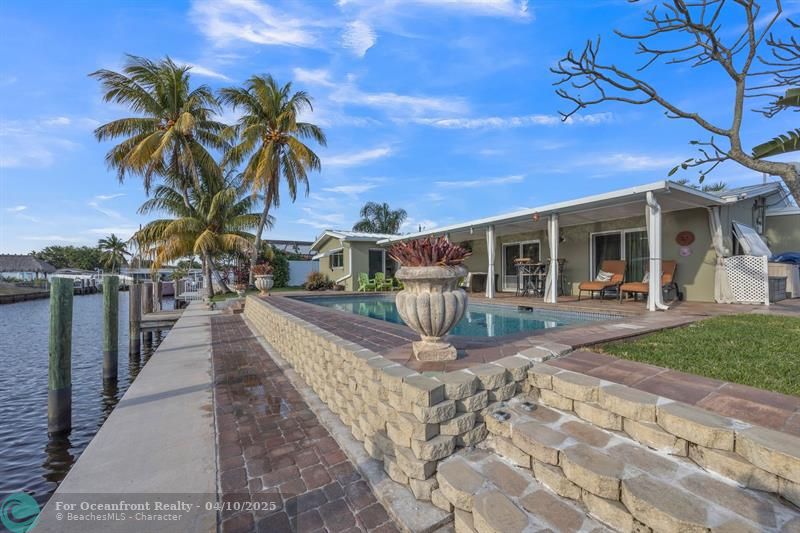 This entertainers dream home comes with New Seawall & Dock & replaced old galvanized pipes & sewer lines. Enjoy yourself by the saltwater heated pool. Incl pool maintenance equip. Or relax on the 490 sq ft patio with fans & tv. New a/c & tank less water heater. Tinted impact windows & doors. Beautiful solar landscaping with potted plants. Incl. Lawn maintenance equip. Newer appliances with 2 refrig. with filtered water & icemaker. Plus wine frig. Smart alarm, camera & sprinkler syst. Backup generator. Lots of upgrades near premium schools on cul de sac like property. Bridge is being raised from 6.44 high tide- low tide 8.36 to 10.37 High tide and 12.29 low tide. Sept 26