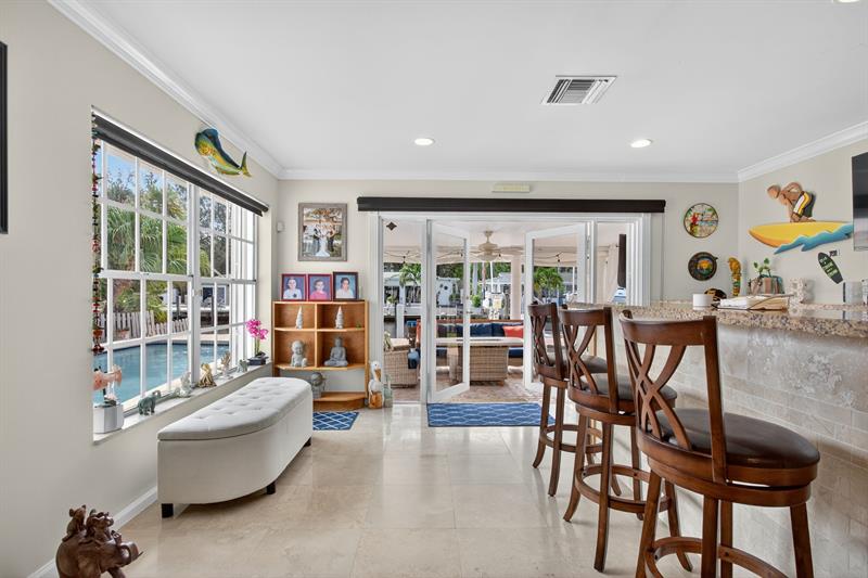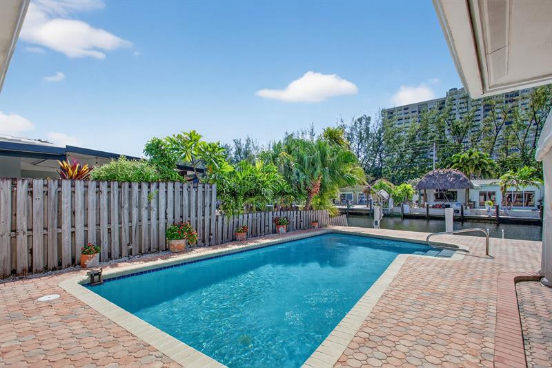 Current lowest Ocean Access waterfront Pool home in South Pompano area! 60 ft of waterfront. 14,000 pound boat lift, large dock. South facing pool area. 2 bedroom and 2 baths. French doors lead to the large Cabana area. Inviting circular paver driveway. Marble flooring. Updated kitchen. Entertainers dream. Bring your boat, kayaks, jet ski's, and enjoy the South Florida waterfront living! 1 block to Ft Lauderdale. Visit nearby Pompano Beach, one of the widest in Broward County. Control the sprinkler system, house lighting, and a/c from your smart phone or tablet. One of the largest entertaining pool and patios in the area. Travel down the street and see the amazing homes being built. Roof 2022, A/c 2021, seawall inspected/sealed 2024, pool resurfaced 2021.