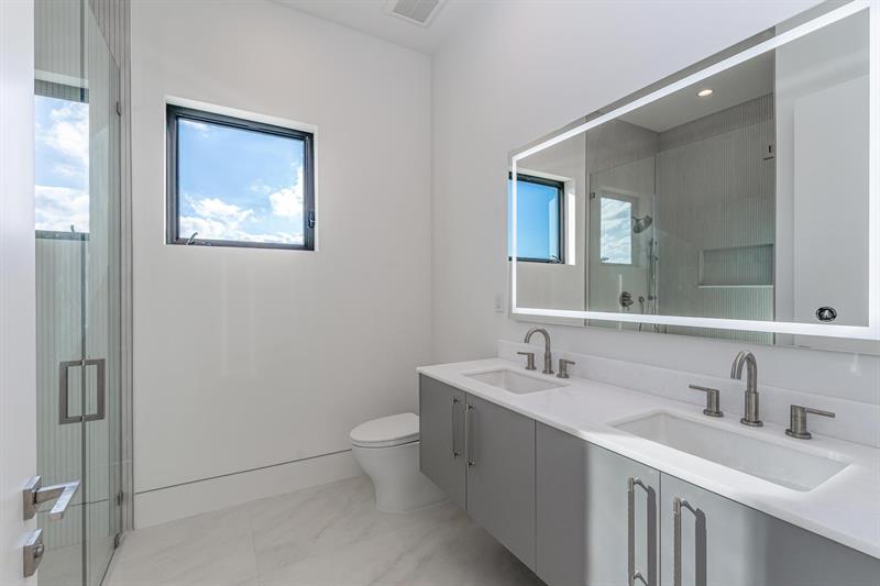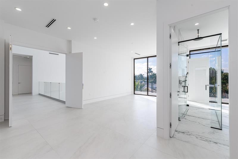 Brand-new modern two-story waterfront home offering the South Florida lifestyle that you dream about. Thoughtfully designed with floor-to-ceiling glass, a steel/wood/glass floating staircase, 4x4 porcelain stone flooring and water views from nearly every room. The chef’s kitchen features Sub-Zero and Wolf appliances, matte-gold fixtures, a 5x10 island and wet bar. The 5BR/5BA/2-car garage layout includes a stunning owner’s suite with dual balconies, spa-style bath, tastefully designed walk-in closet and serene waterway vistas. Outside, enjoy generous space to entertain, a 17x32 pool, spa, gorgeous landscaping, foliage/greenspace (flowering trees, palms and clusia), privacy fencing, full summer kitchen and new 75' dock (currently hosting 62' Azimut). A refined waterfront estate ready now.