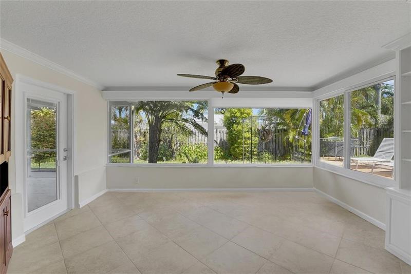 Beautiful coastal retreat in East Pompano! This charming 2-bedroom home offers the potential to easily create a 3rd bedroom and features a spacious, light-filled floor plan with plantation shutters throughout. Enjoy a fully updated kitchen with a large breakfast nook, granite countertops, and stainless-steel appliances. Bedrooms and bathrooms are generously sized with large walk-in closets. Step into total tranquility in your private tropical oasis, complete with lush landscaping, fountains, Oversized sun Deck, and a screened-in patio—perfect for relaxing or entertaining. Located just minutes from Atlantic Ave, the beach, Pompano Fishing Pier, golf courses, restaurants, and shopping. Nestled in an exciting, up-and-coming area of Pompano Beach. New Million-dollar builds going up all around!
