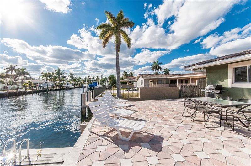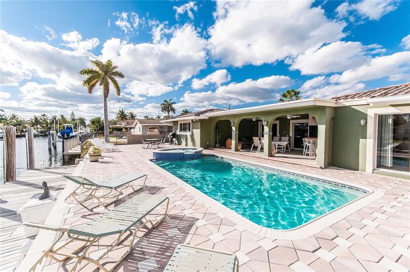 This waterfront pool home with 2 car garage is ready for updates to become the house of your dreams. It sits 4 homes off the Intracoastal and is located on a gated island cul de sac in one of the best areas of Pompano Beach. It is ideal for the boating enthusiast with a new protected dock for up to a 70 ft boat with NO fixed bridges and a short ride to the Inlet. The home is spacious with a triple split layout and versatile floor plan that could be reimagined to a modern design. Entertainers will love the living areas that access a huge covered patio overlooking the pool, spa and water, ideal for outdoor living. The kitchen is huge and primed to be opened up to the living dining areas. The neighborhood is secure and close to excellent shopping, dining, golf and a short ride to the beach.