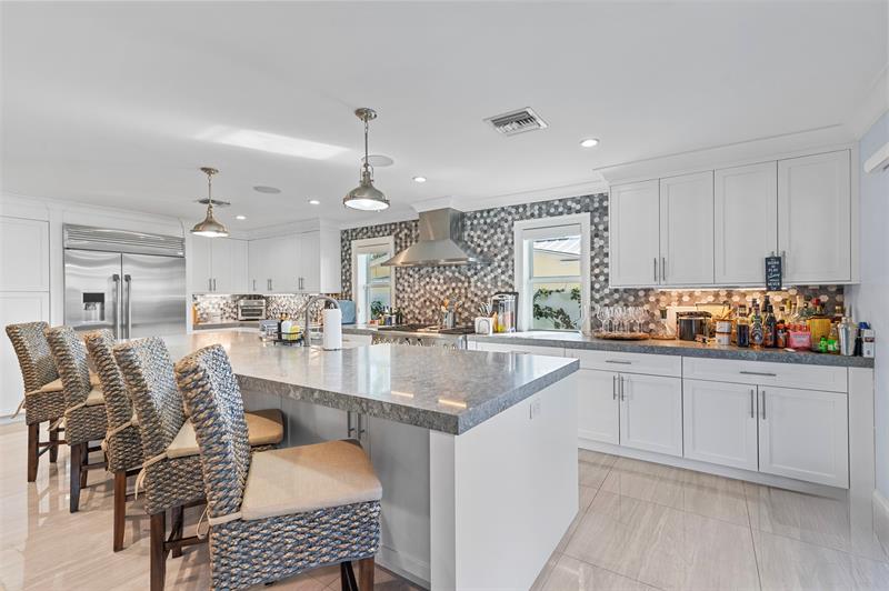 Fully renovated & furnished move-in ready home on exclusive Terra Mar Island, steps from the Atlantic Ocean! Includes access to a private, deeded beach shared by just half the island. 2021 renovation features a high-end kitchen including gas stove, Gallery fridge, & top-tier appliances. All-new copper/PVC plumbing, updated electrical, impact windows/doors, electric treatments, & new AC. Smart features: Bose sound, security cams, alarm, WiFi irrigation, 14-ft retractable awning w/ wind sensor. Spray foam insulation, tankless water heater, whole-house generator, full video security system, new pool heater/system, Bermuda grass, landscape lighting & more.