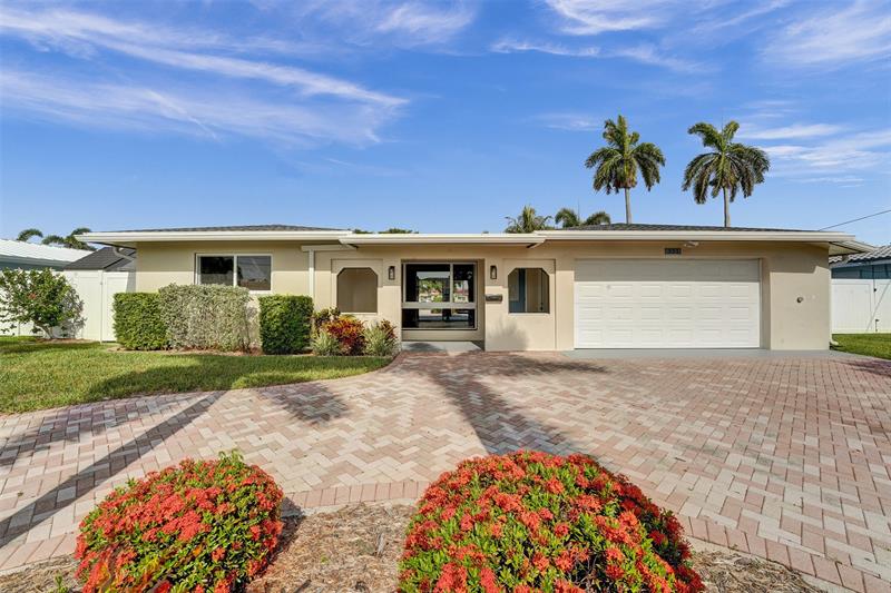 Enjoy relaxed coastal living in one of Pompano Beach’s most desirable waterfront communities! This hidden gem offers 75’ of water frontage on a wide canal with easy access to the Intracoastal. The private tropical yard is perfect for entertaining with a saltwater pool, hot tub, and an outdoor built-in gas fireplace. Other features include a 2021 roof, impact windows and french doors, updated bath, newer AC, tankless water heater, PVC fence, large 2-car garage with extra storage closets, 3 sheds, an outdoor side workstation, parking for a boat or RV and a large paver circular driveway. Ideal for boaters and those who love the Florida lifestyle. Minutes to Pompano Beach Pier, beaches, shopping, entertainment, dining, and marinas!