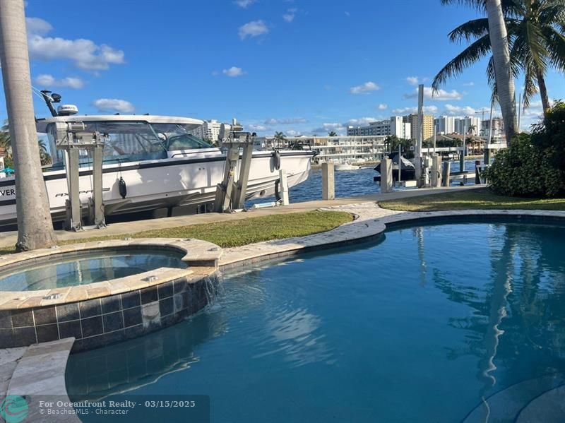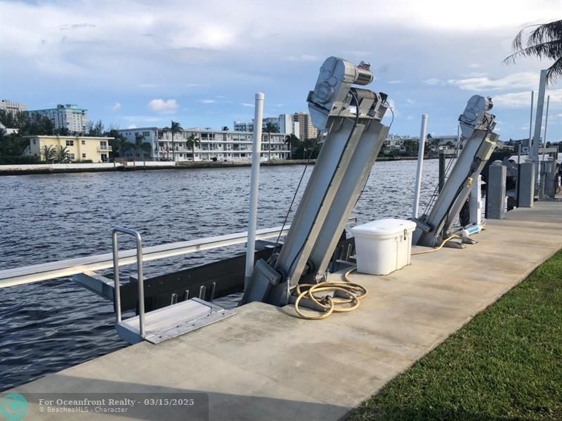 Charming 3 bedroom 3 bathroom ranch home right on the Intracoastal Waterway with a 27K LBS elevator boat lift.