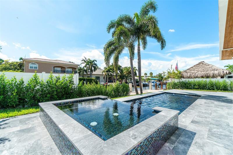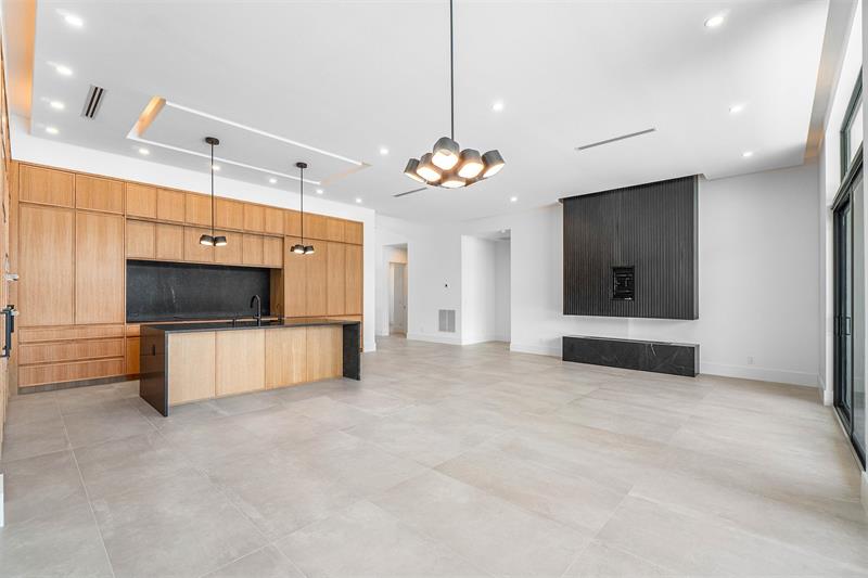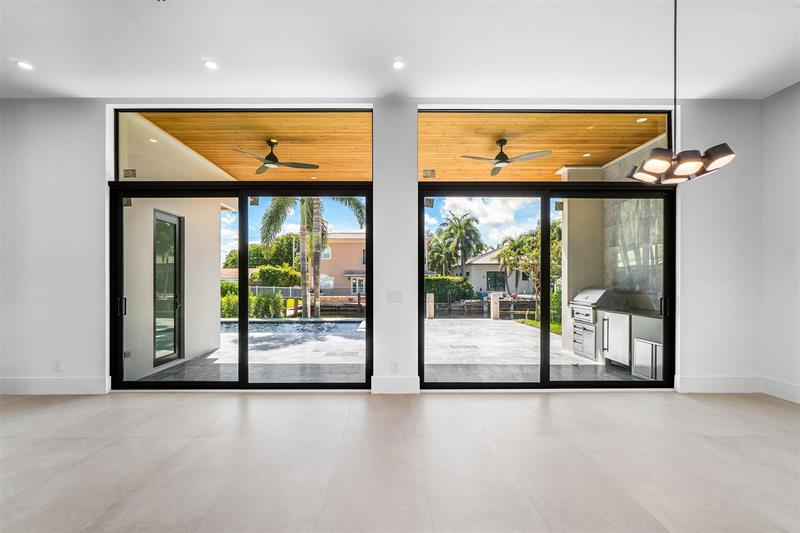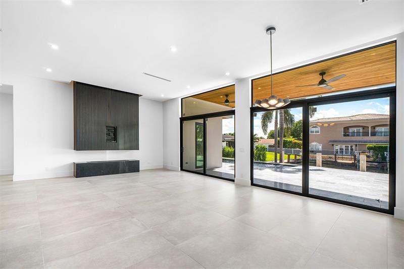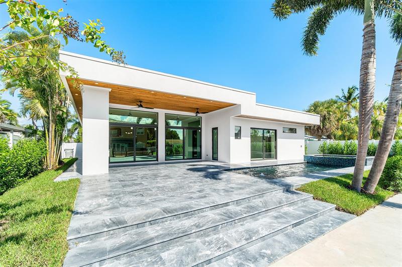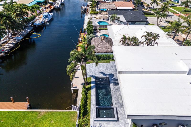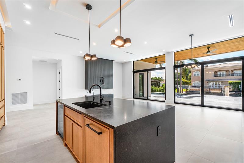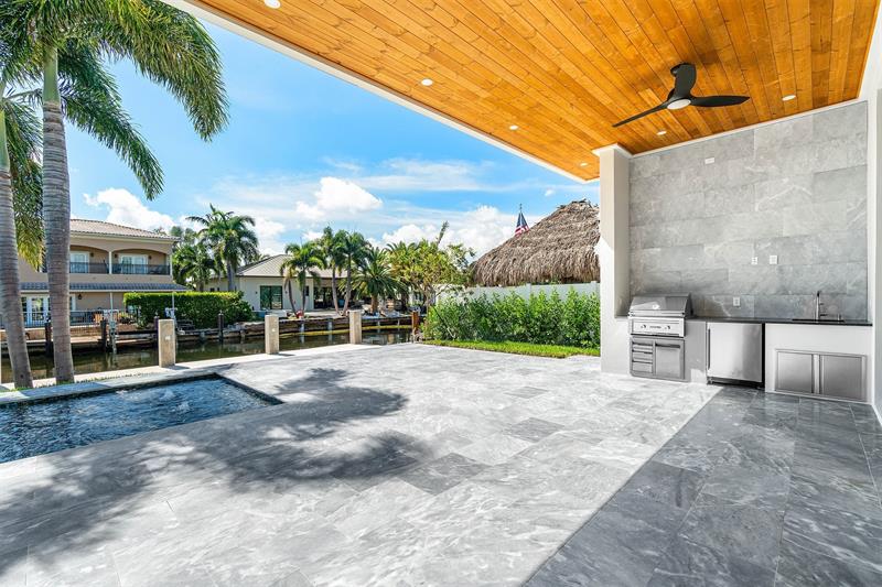 Modern Waterfront New Construction in Pompano Beach. 3,301 total sq ft built for peace of mind and designed for the ultimate Florida lifestyle. Completed with Certificate of Occupancy, this one-level residence offers ocean access, a new concrete dock, saltwater pool with hot tub spa, large covered patio, cabana bath, and a fully equipped outdoor kitchen. Inside, enjoy high ceilings, porcelain floors, marble baths, custom white oak cabinetry with designer lighting, high end appliances and plumbing fixtures.