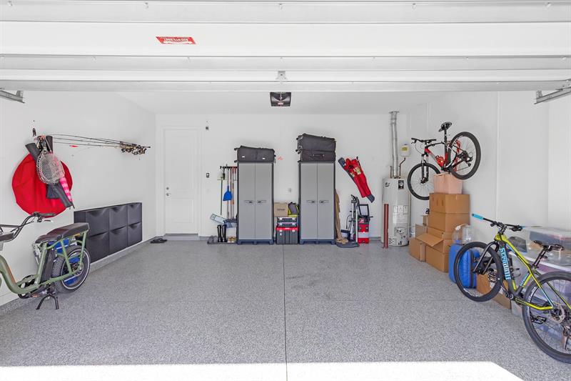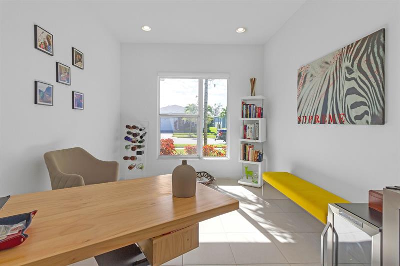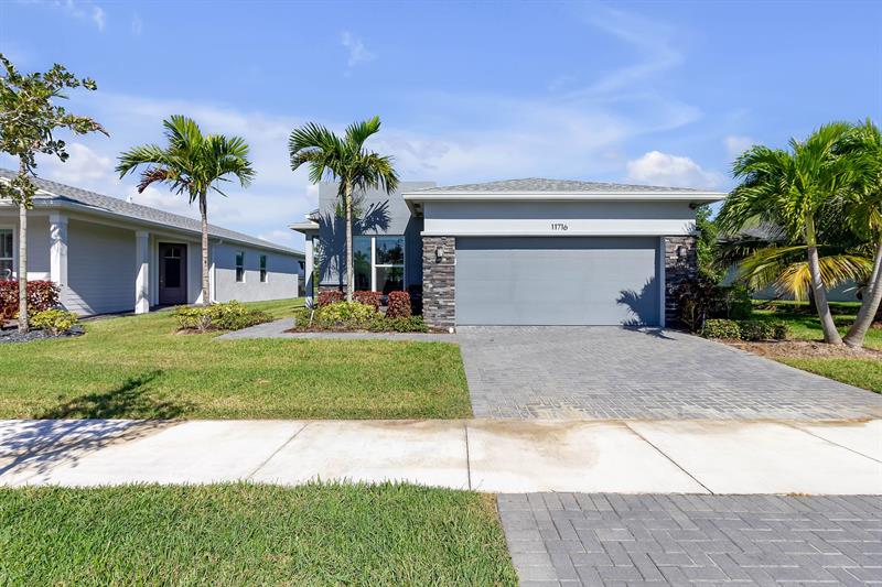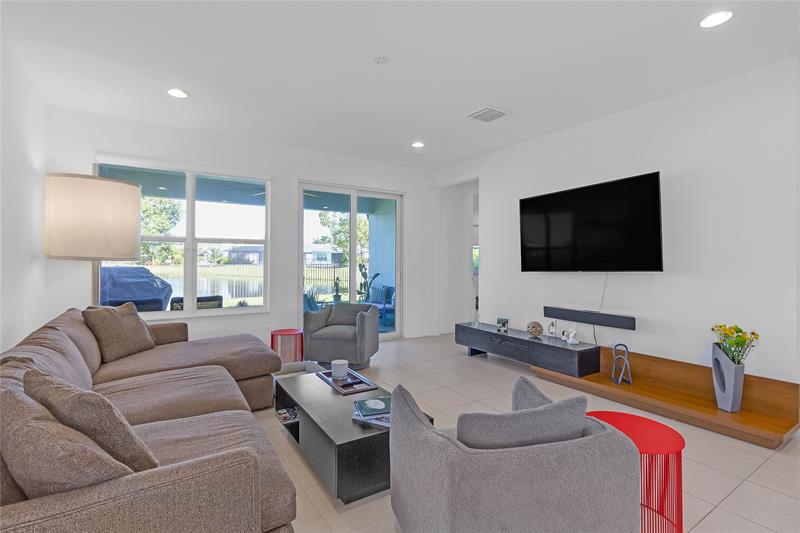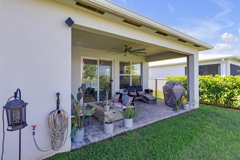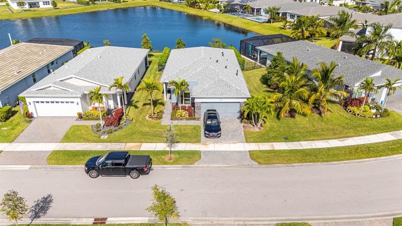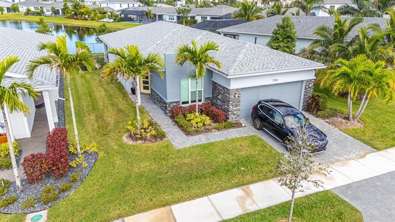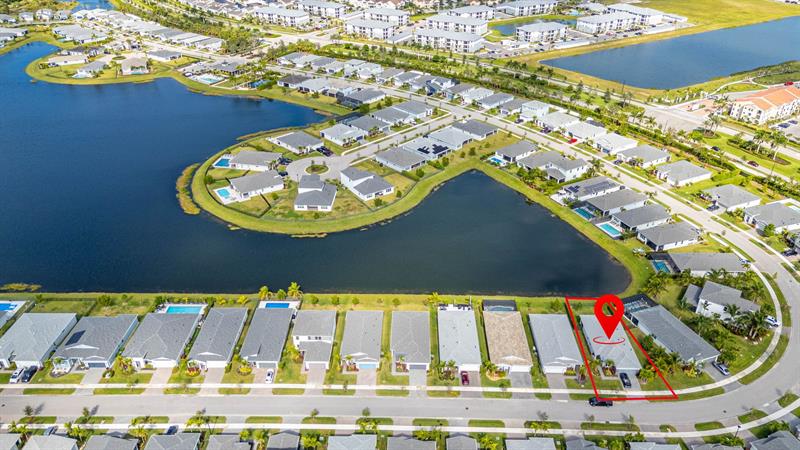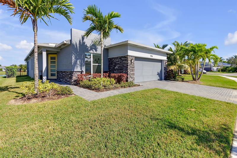 This stunning 2021 newer construction Aspen home offers lakefront living at its finest. Set on a spacious fenced in lot, modern, contemporary-style 2-bed/2-bath home features European furnishings included and a outdoor brick facade. The office/den can be used as a 3rd bedroom! A striking wine wall adds a touch of elegance to the interior. Enjoy the peace of mind with impact windows/doors, a newer roof, PVC plumbing, and a newer electrical panel. The open-concept design is perfect for entertaining, w/ large windows that bring in natural light and serene lake views with sunset. The garage has epoxy flooring. The walk in closet has a shelving organizer. Outside, a cozy firepit awaits. This home combines luxury, functionality, and elegance, making it a perfect retreat for lakefront living.