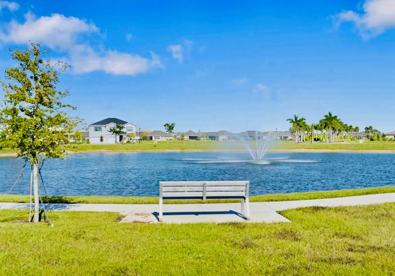 3/2 CBS garage upgraded home, Jemison model, in Central Park. Modern kitchen with a large island; white cabinets with marble countertops & upgraded backsplash, stainless appliances and impressive sized pantry. Upgraded LVP in the main areas & flex. Carpet in primary and 2nd bedroom. 2 car garage, with ceiling mounted storage. Screened patio and fenced yard. Added gutters. Upgrades include electronic window treatments, upgraded light fixtures/switches, whole house water softener system, customized primary closet, surround sound patio and garage, upgraded kitchen cabinet pulls, W/D Aluminum panels for protection from hurricane damage. Low HOA. Split floor plan. Inspiration Park inside Central Park is a 10 acre recreational area. Resort style amenities.